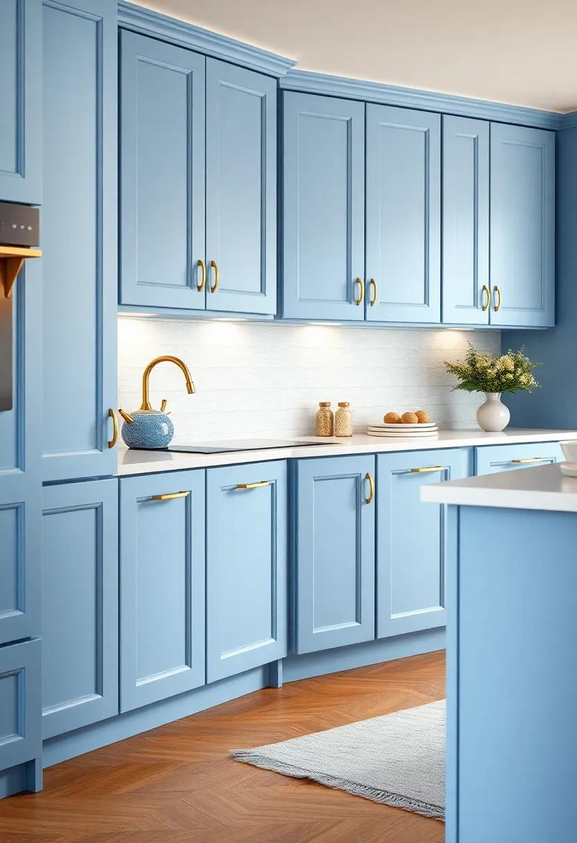 Whimsical Touches: Mix soft blue cabinets with unique gold handles shaped like whimsical elements (like leaves or stars) for a playful finish