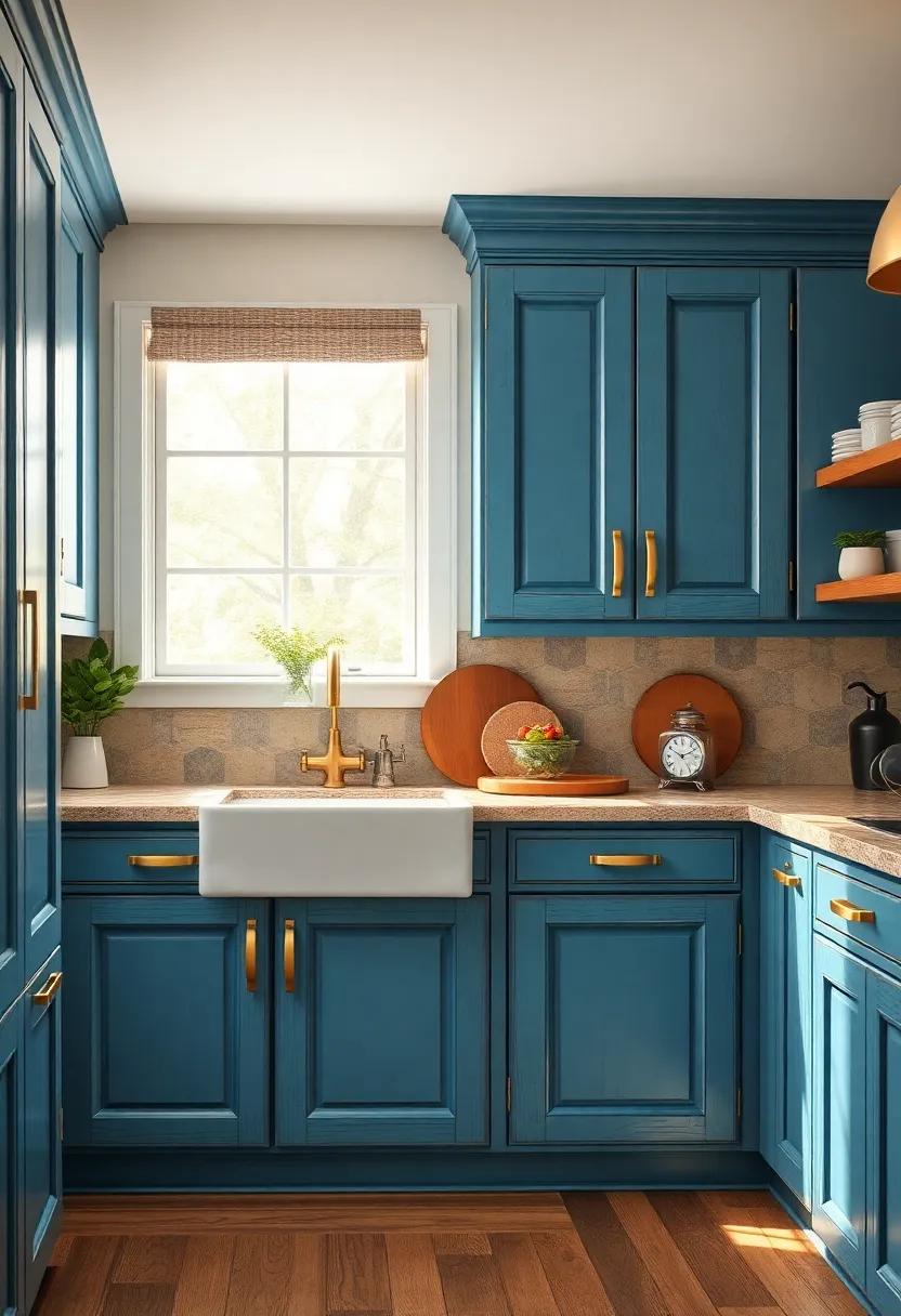 Rustic Refinement: Use a muted slate blue with aged gold handles for a warm, inviting atmosphere that exudes coziness and charm