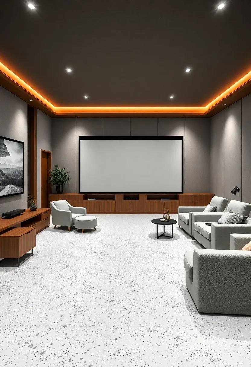 Imagine sinking into supple leather seating while enveloped by the mesmerizing patterns of geometric terrazzo flooring. Each step in this luxurious home theater sings the song of modern design, seamlessly blending artistry with functionality. The intricate mosaic of colors and shapes elevates the aesthetic, offering a visual feast that coordinates beautifully with your chosen decor and technology. A floor like this not only serves as a canvas for your imagination but also enhances the acoustics,amplifying your cinematic experience. As you settle in for the latest blockbuster, the unique patterns beneath your feet echo the sophistication of the films on screen.