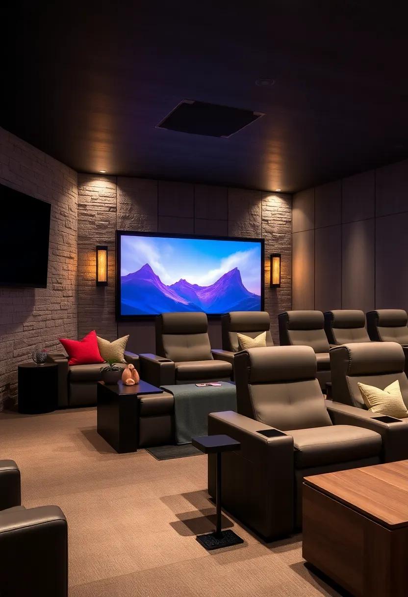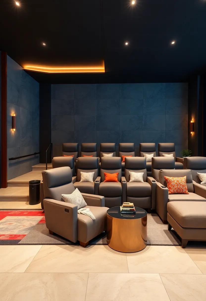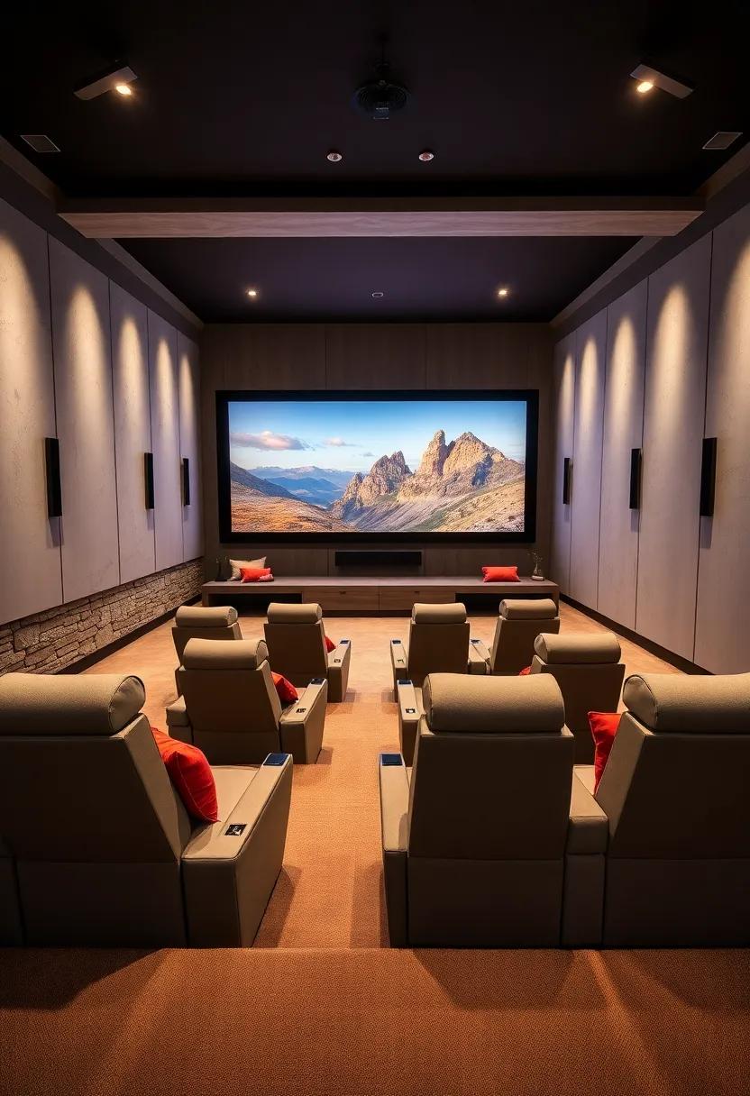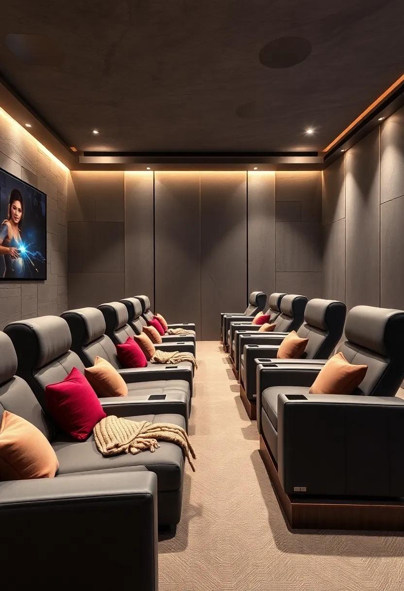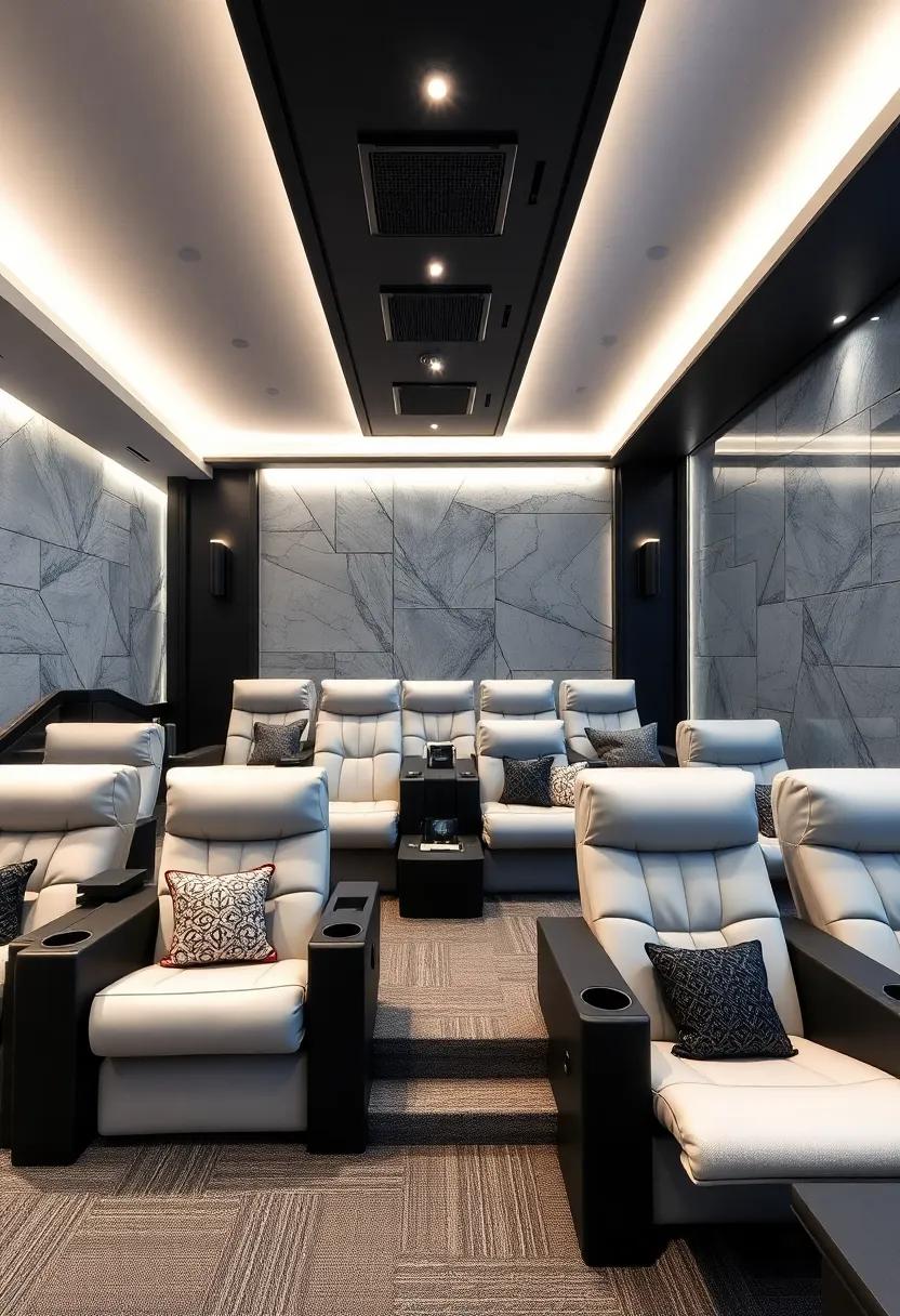 Experience cinematic magic in a sleek, modern home theater featuring oversized leather recliners and a state-of-the-art sound system that envelops you in every thrilling moment