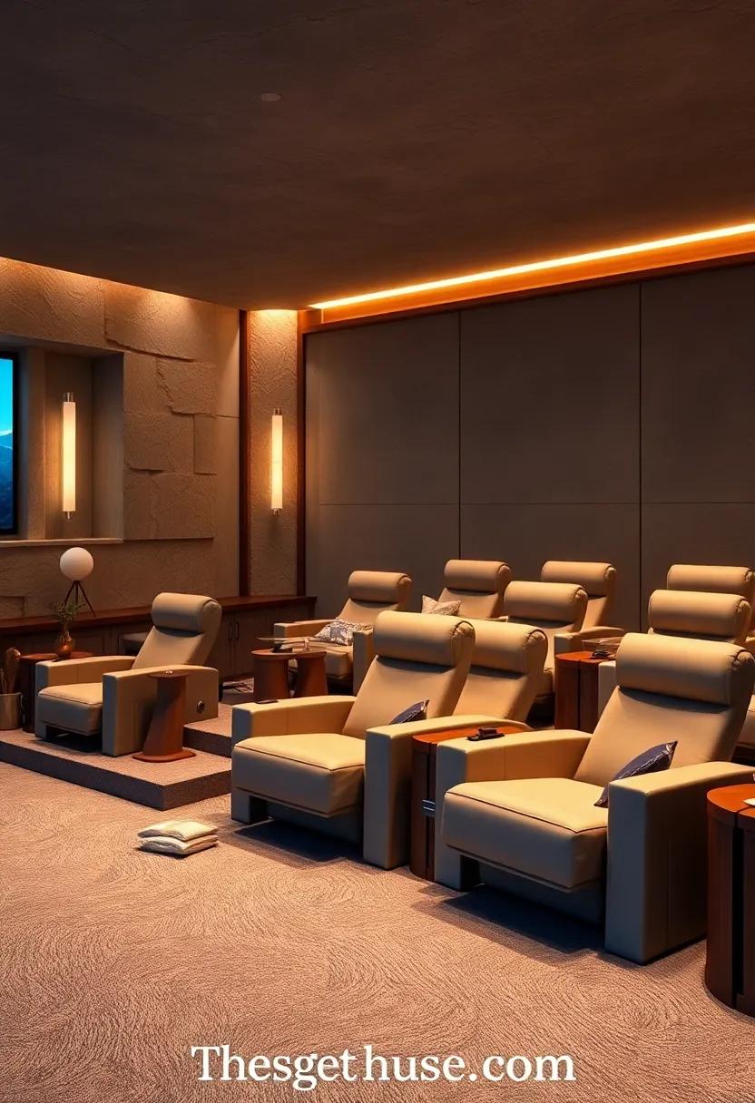 Retreat to a zen-inspired home theater with reclining seats known for their ergonomic design, offering a tranquil space to enjoy films away from the hustle and bustle