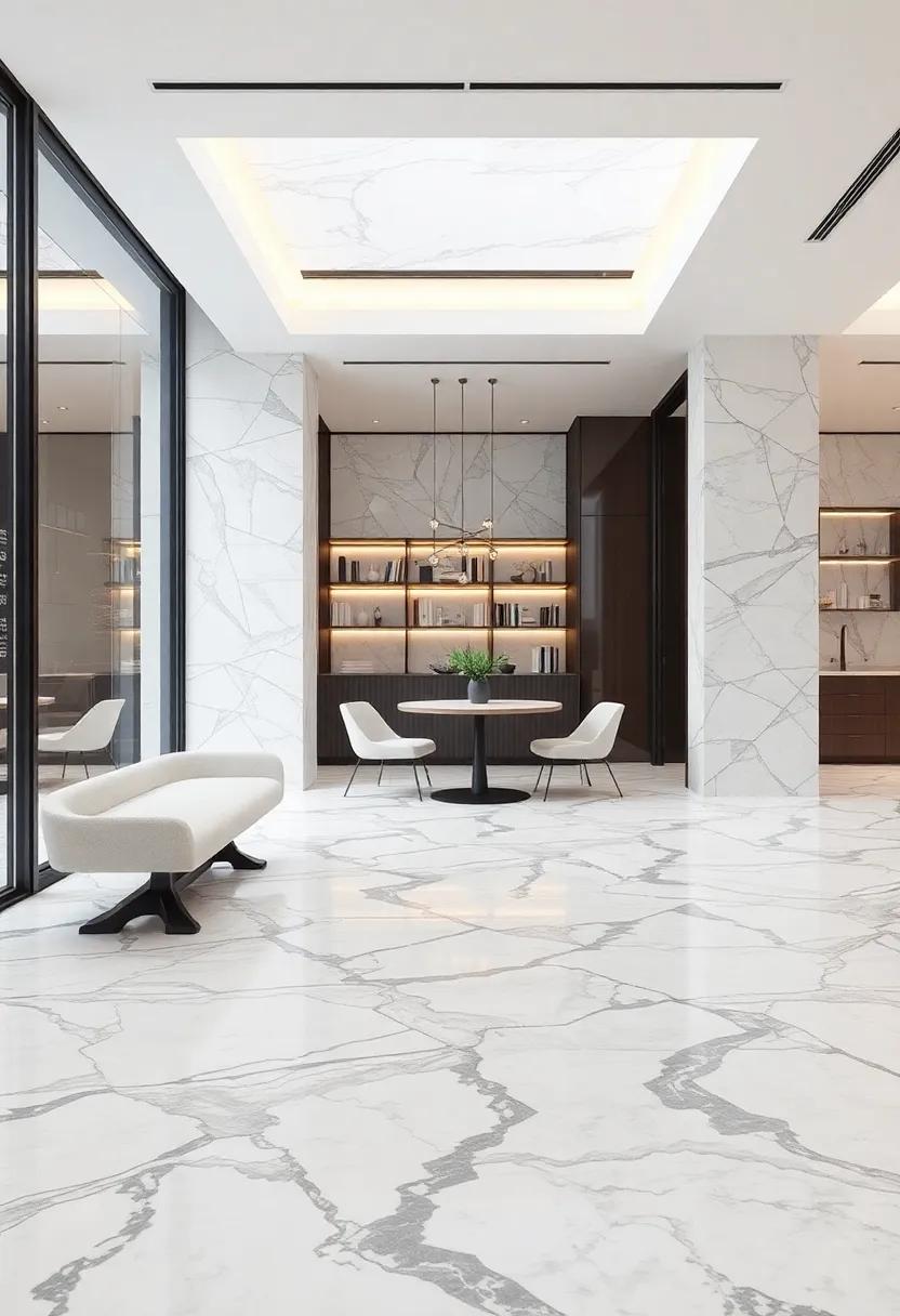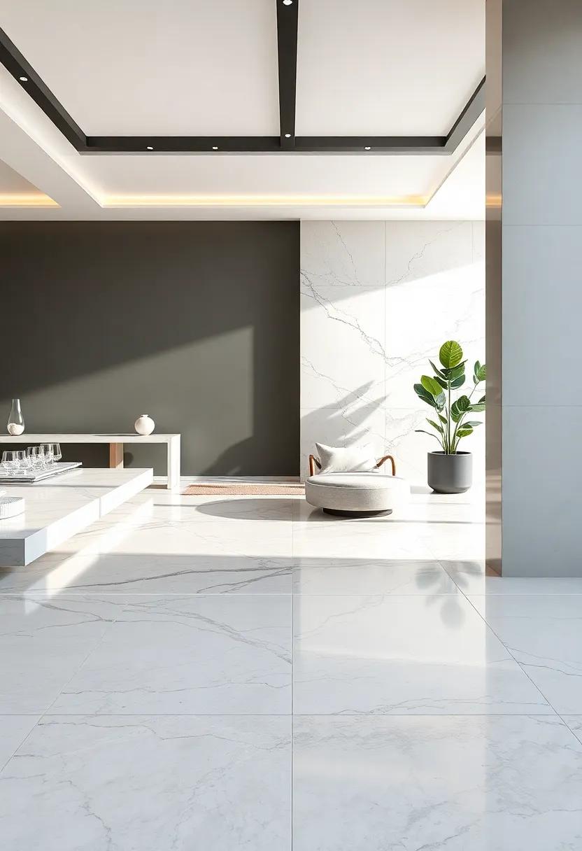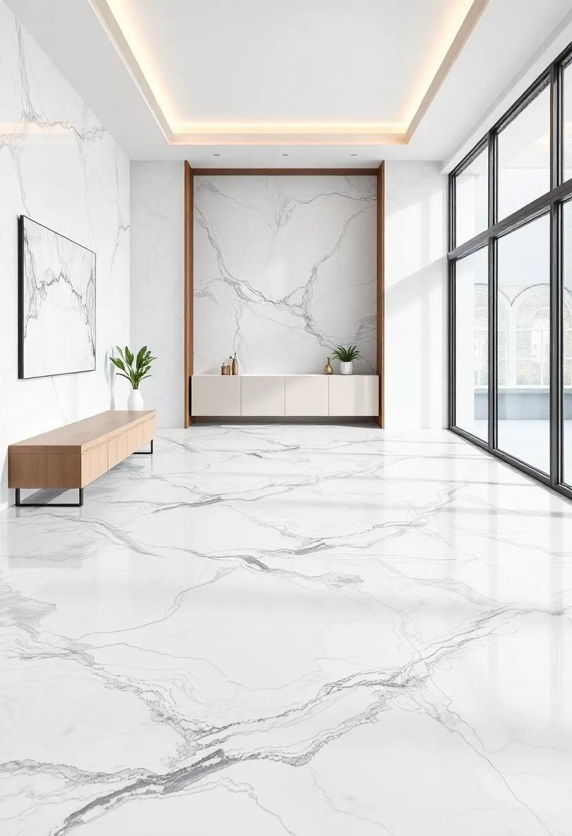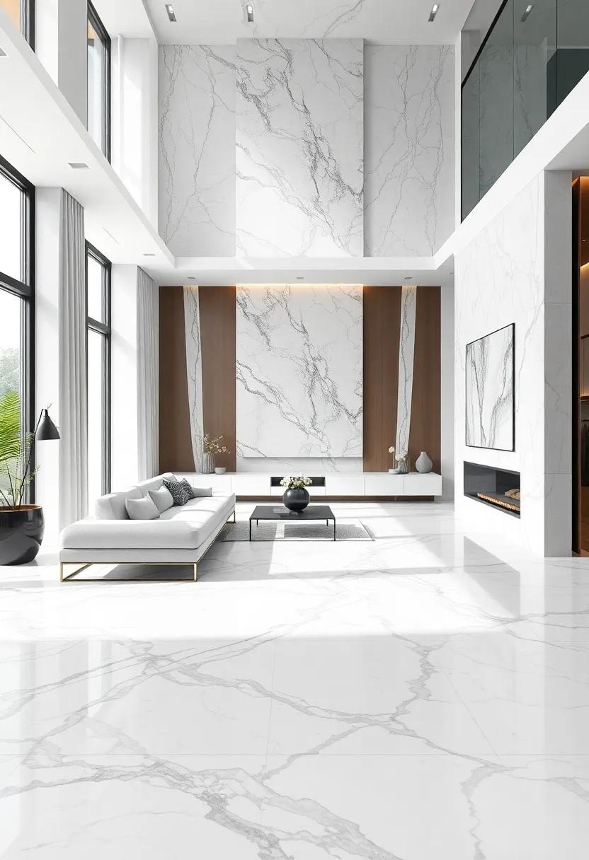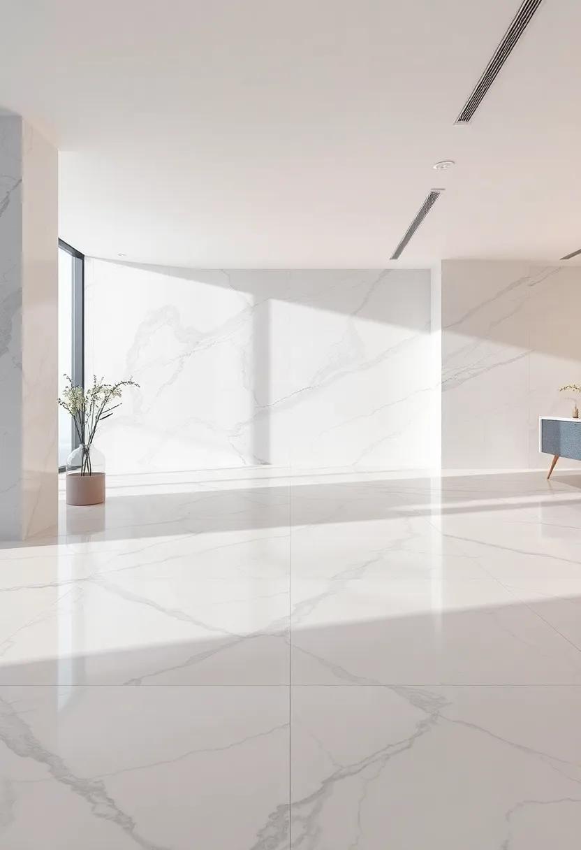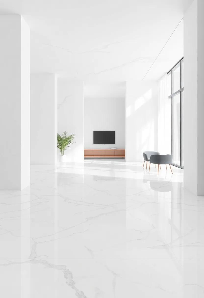 Minimalist White: Explore the simplicity of pure white marble flooring that enhances light and space in modern, open-concept designs