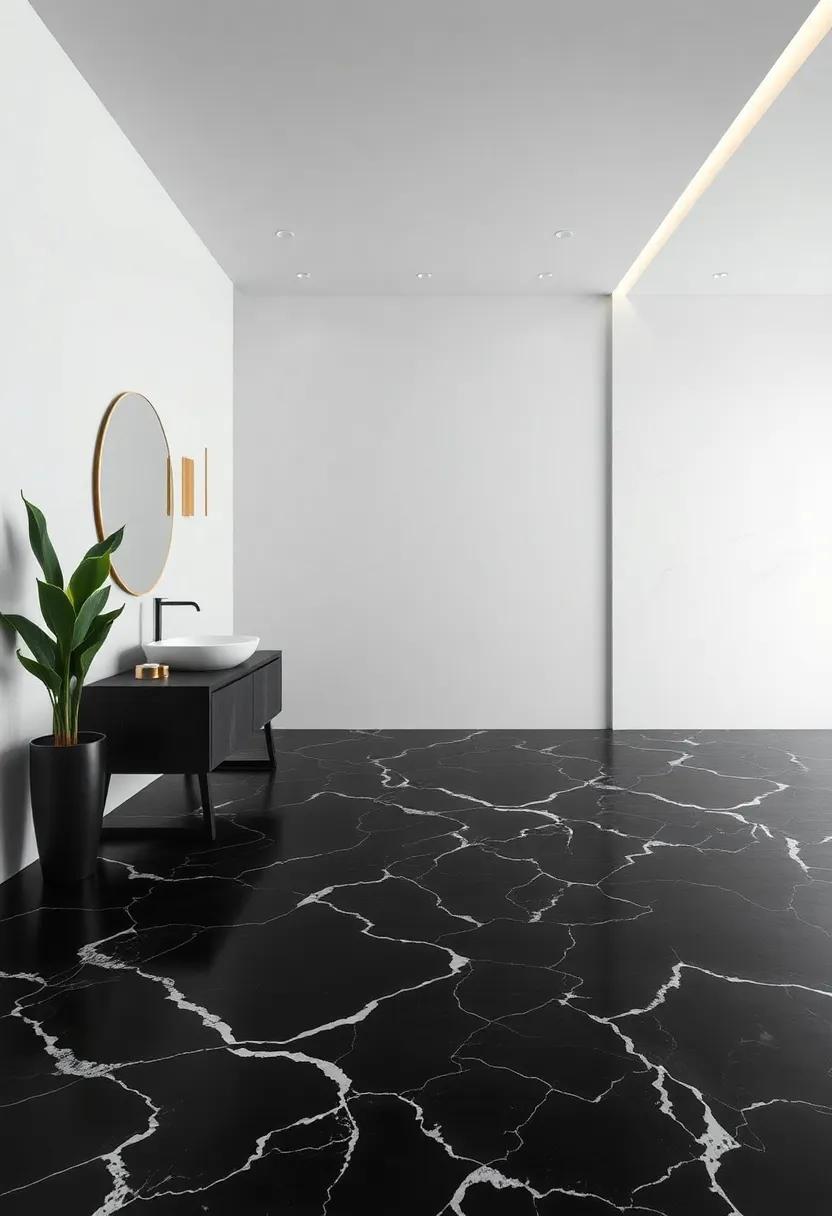 Deep black marble flooring is a timeless choice for those seeking to infuse their entryway or bathroom with an air of luxury. This striking material not only exudes sophistication but also serves as a versatile backdrop that complements a variety of design aesthetics. When using black marble, consider pairing it with metallic accents, such as gold or silver fixtures, to create a stunning contrast. It’s also effective to incorporate bold lighting, such as pendant lamps or recessed lighting, to enhance the natural veins and luster of the marble, making the space feel both inviting and dramatic.