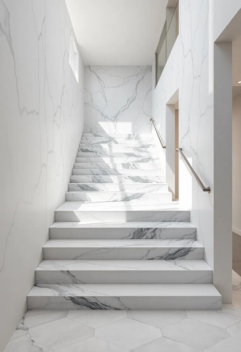 Elevate your home’s aesthetic with marble-clad staircases that serve as captivating focal points. The clean, polished surface of marble not only enhances the visual appeal but also provides a sturdy, slip-resistant option for both modern and traditional homes. With a variety of colors and veining patterns available, marble can complement any interior theme you desire. Consider honing the marble to give it a softer, more muted look or choose glossy finishes for a sophisticated shine that catches the eye. The surrounding decor also plays a crucial role; balance the richness of marble with wooden balustrades or sleek metal railings to create a harmonious blend of materials.