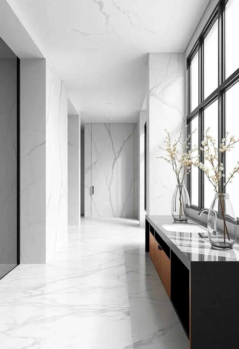 Statement Hallways: Transform hallways into luxurious walkways with dramatic marble designs that set the tone for the entire house