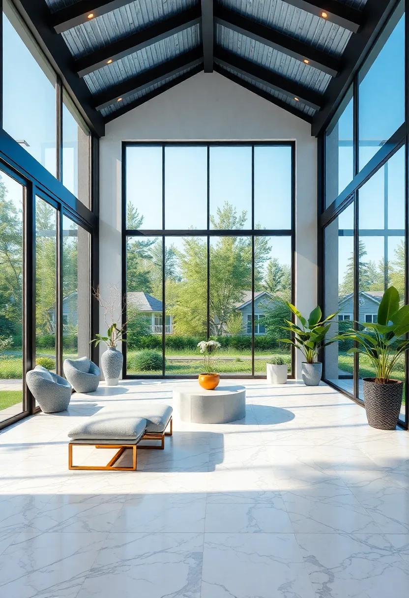 Transform your sunroom into a serene escape with the elegance of marble flooring. Using light-colored marble can evoke a sense of spaciousness and brightness, perfectly reflecting natural light to create a warm, inviting atmosphere. Consider pairing your marble floors with lush greenery and large windows to blur the line between indoor and outdoor living. The result will be a harmonious blend of nature and design, where the soothing hues of the marble complement the vibrant colors of your plants and the sky beyond.