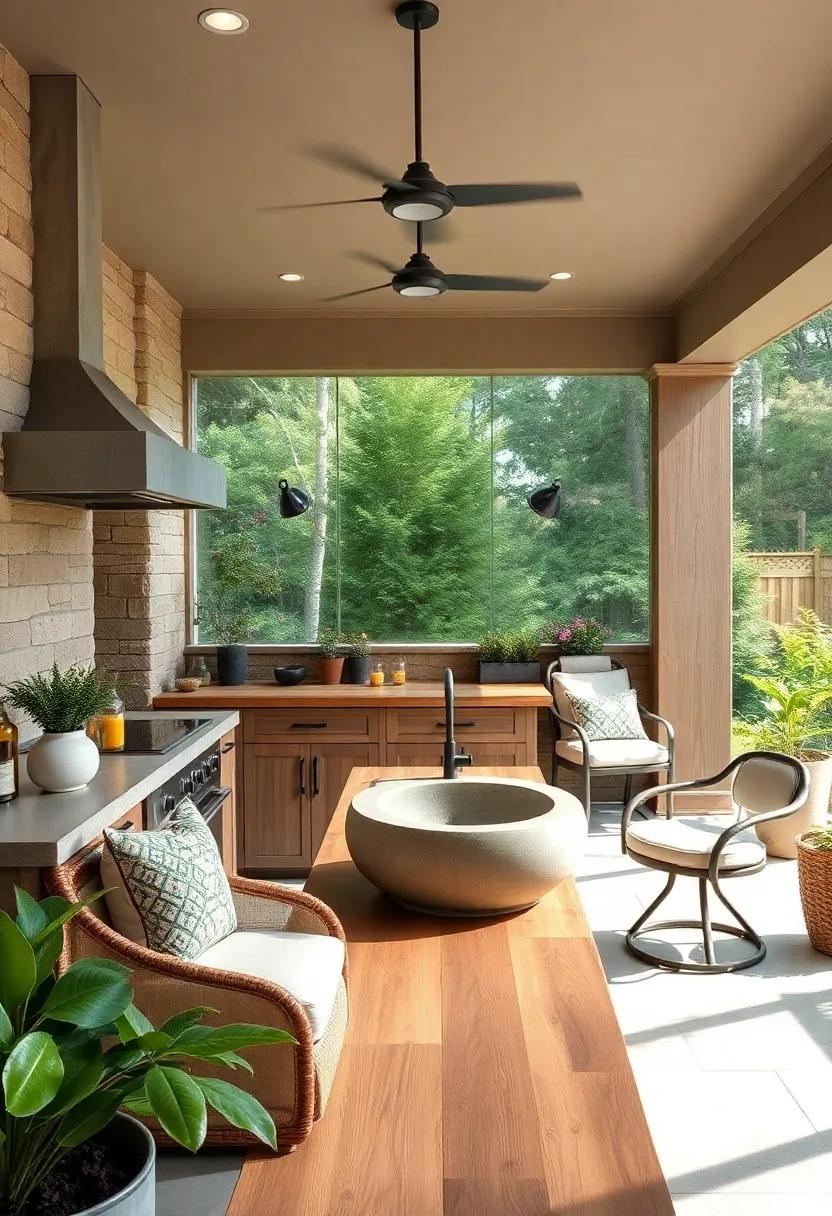 In addition to the aesthetic appeal, a nature-inspired kitchen offers practical benefits as well. Thoughtfully designed countertops can withstand the rigors of outdoor cooking, allowing you to chop, mix, and serve with ease. To enhance your experience, consider incorporating elements like indoor plants and large windows that invite fresh air and natural light. Setting up a cozy dining area nearby can foster a sense of community, inviting family and friends to gather and enjoy the fruits of your labor. As you create delicious dishes, the sounds of nature and the gentle breeze will provide a peaceful backdrop that truly elevates your outdoor experience.