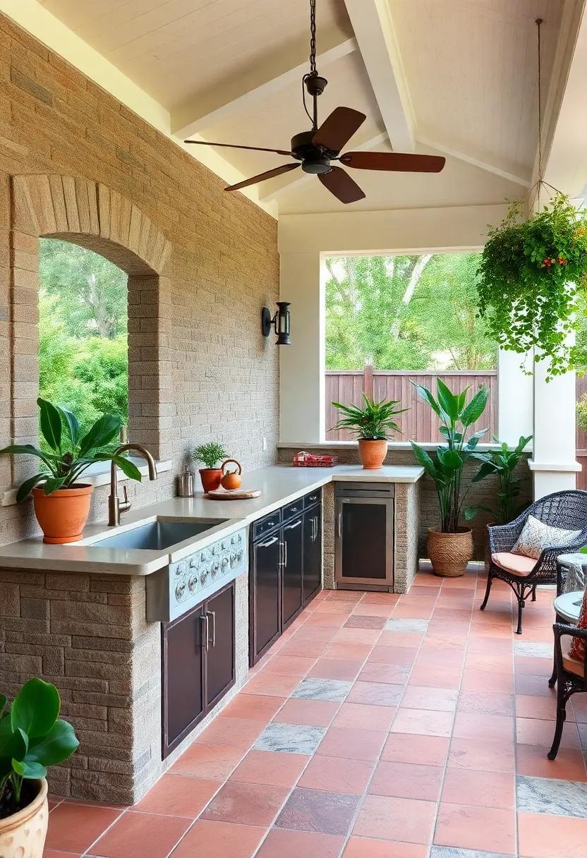 Transform your outdoor cooking experience by adopting a Mediterranean-inspired design that captures the essence of sun-soaked villas and vibrant markets. The use of terracotta tiles brings an earthy warmth to your kitchen, effortlessly blending with the terracotta hues of sprawling landscapes. These rustic tiles not only provide a non-slip surface, perfect for bustling gatherings, but also reflect the rich cultural heritage of the Mediterranean. Imagine the ambiance as the sun sets, casting a warm glow on the tiled surfaces, enhancing the inviting atmosphere of your al fresco dining.