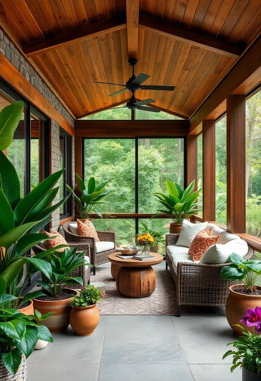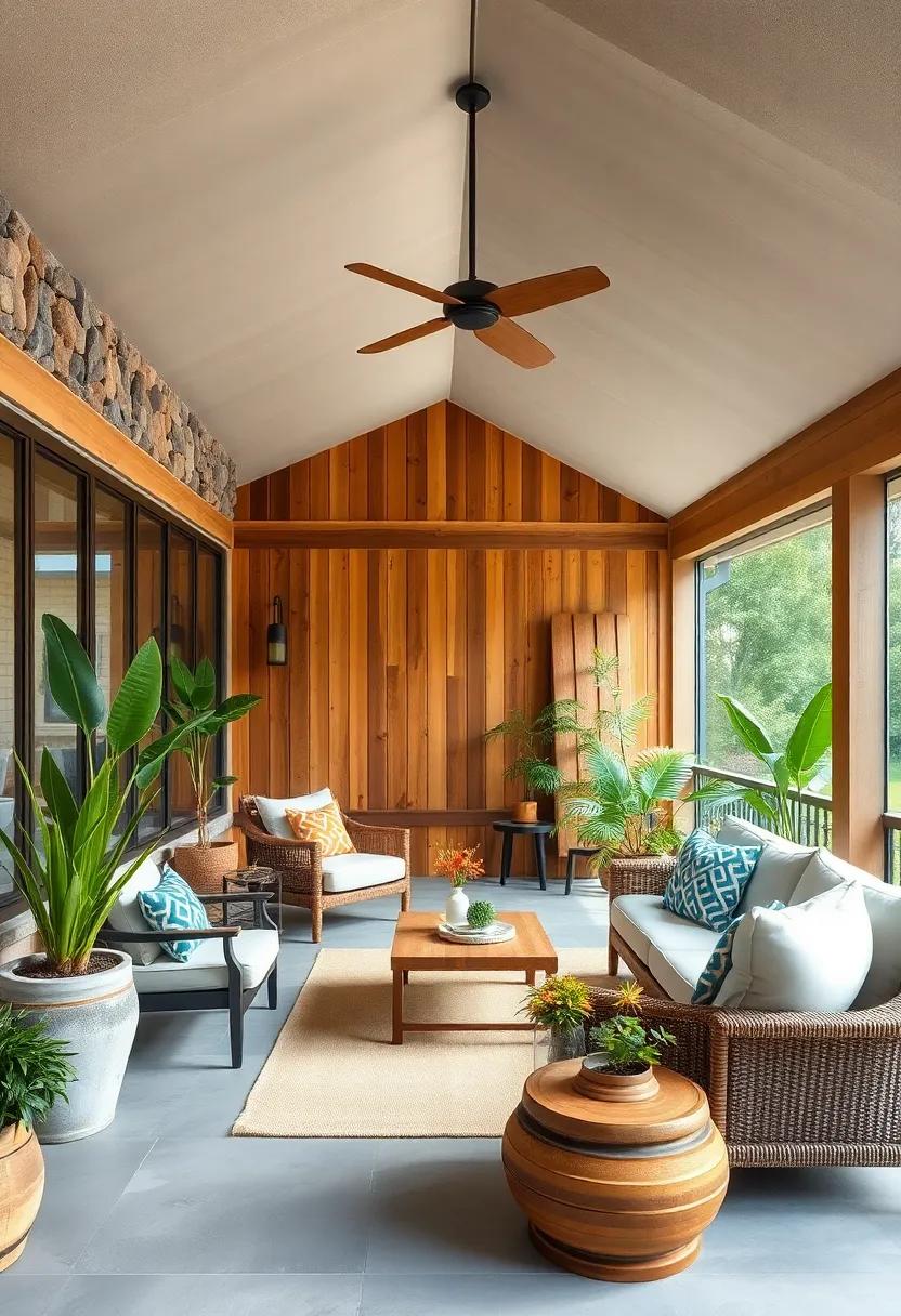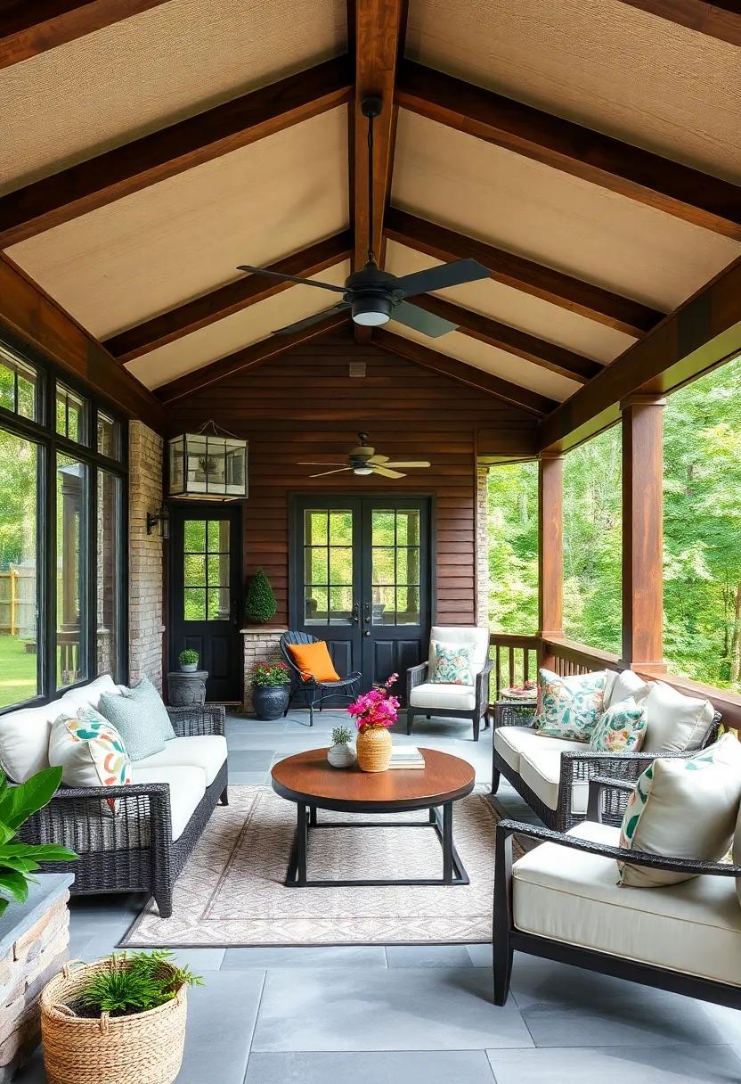 in this idyllic setting, the balance of natural and man-made resonates beautifully. Consider adding hanging planters or living walls adorned with succulents to further entwine the allure of nature within your porch aesthetic. With the right mix of textures and tones, every visit to this retreat can be evocative of a mini vacation in paradise. explore the possibilities of lighting—a blend of soft string lights and bold lanterns can illuminate wood beams, highlighting the organic beauty of the plants and creating an enchanting atmosphere as twilight descends.