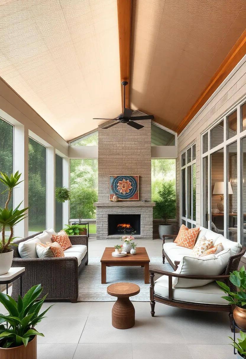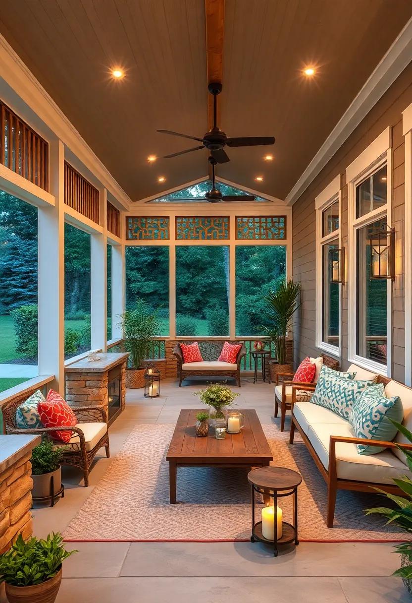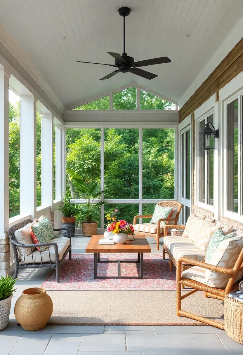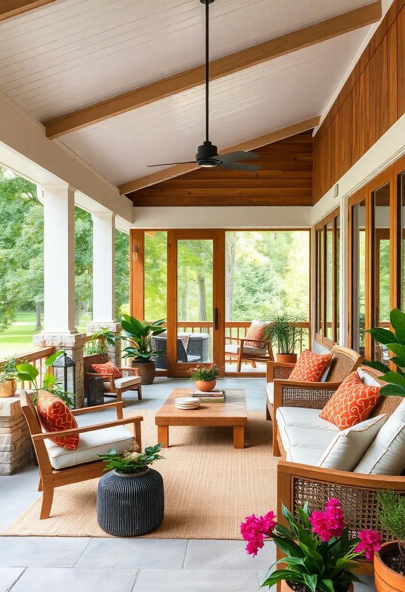 in this idyllic setting, the balance of natural and man-made resonates beautifully. Consider adding hanging planters or living walls adorned with succulents to further entwine the allure of nature within your porch aesthetic. With the right mix of textures and tones, every visit to this retreat can be evocative of a mini vacation in paradise. explore the possibilities of lighting—a blend of soft string lights and bold lanterns can illuminate wood beams, highlighting the organic beauty of the plants and creating an enchanting atmosphere as twilight descends.