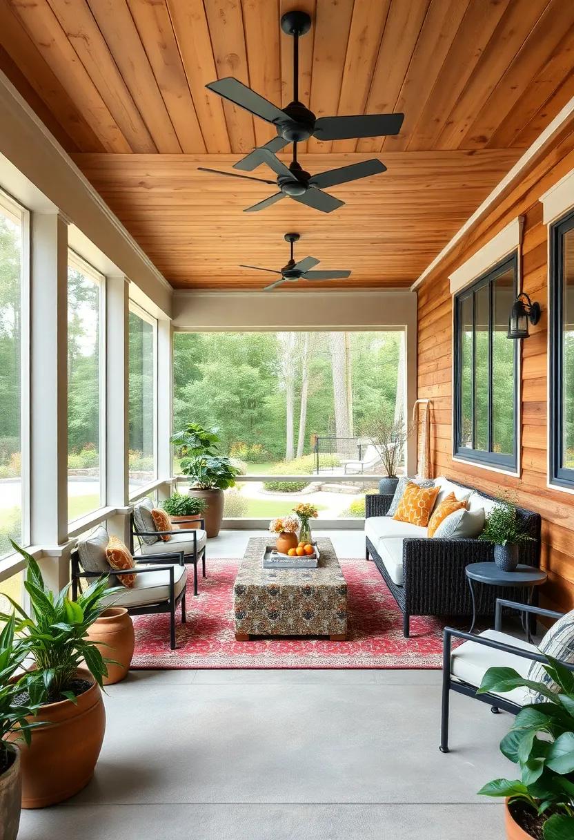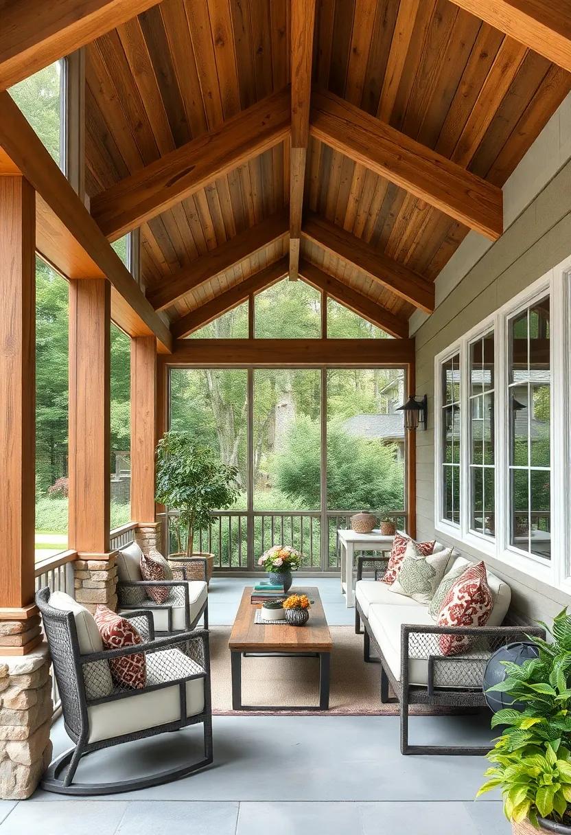 Enhancing the porch’s allure is the thoughtful integration of plants and decor that mirror its wood accents. Imagine a rustic coffee table made from driftwood paired with colorful,hand-painted pottery as accents. This combination sparks creativity and engages the senses, making the porch a perfect retreat for quiet reflection or lively conversations. Add touches like hanging lanterns,wooden planters,and textiles that harmonize with the wooden textures,and you have a sanctuary that effortlessly blends nature with artistic flair,fostering a unique connection to the outdoors.