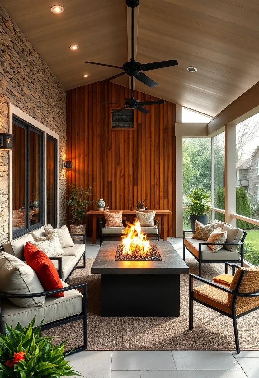 Imagine stepping into a haven where the elegance of contemporary design seamlessly melds with the warmth of natural materials. This stunning screened porch is a true embodiment of modern outdoor living,featuring a stunning array of sleek wooden accents that enhance its aesthetic appeal. The carefully chosen wood tones create an inviting ambiance that resonates with both sophistication and comfort. As you gather around the fire pit table, flame-lit conversations unfold beneath the canopy of stars, providing the perfect backdrop for memorable evenings spent with friends and family.