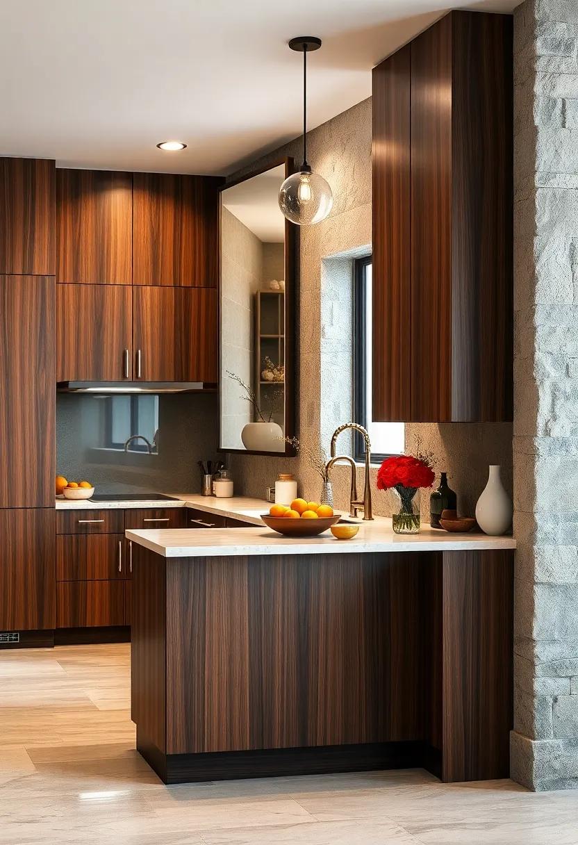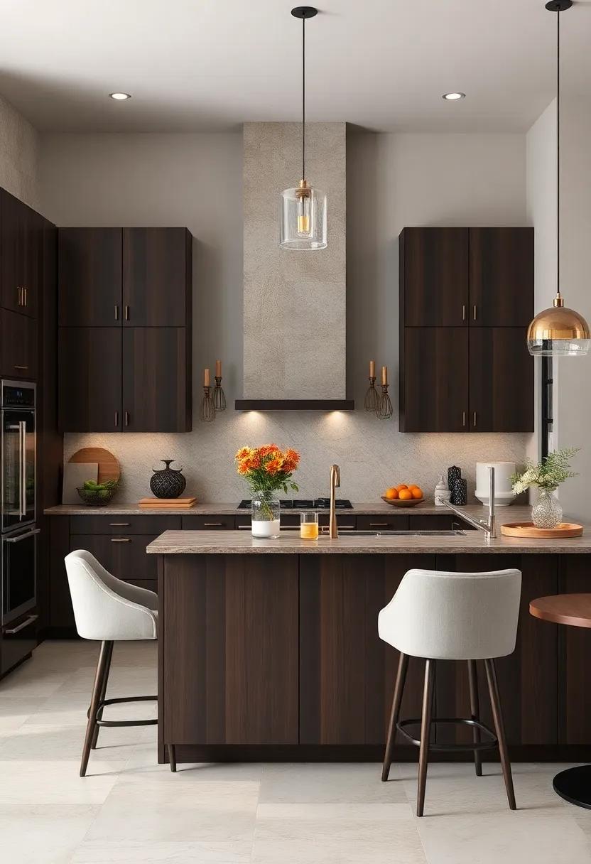 Infuse Natural Elements: Combine espresso wood with natural materials like stone or copper to bring warmth and texture into your kitchen
