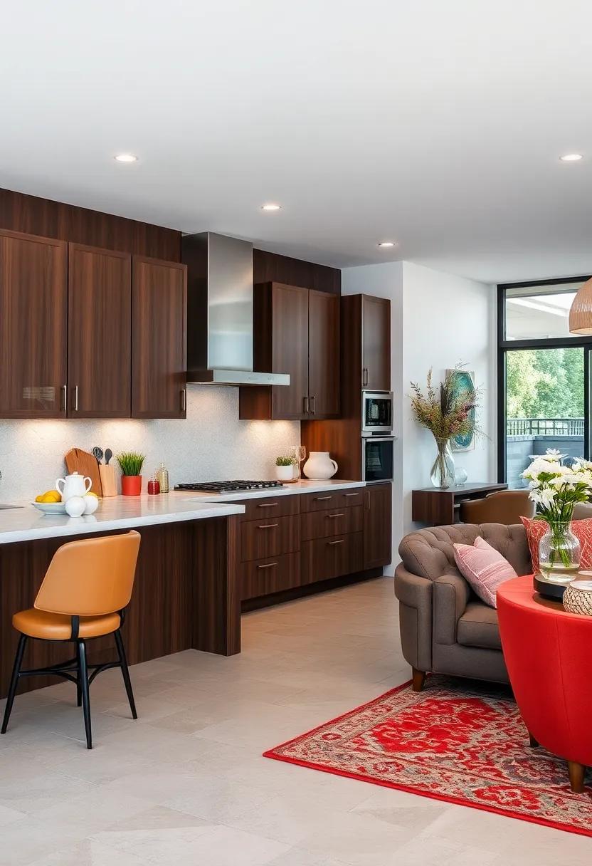 Cooking can be a vibrant experience, so why not reflect that energy in your kitchen decor? By incorporating colorful appliances and vivid accessories, you can transform your space from merely functional to a lively culinary sanctuary. Think bright red toasters, turquoise blenders, or sunny yellow stand mixers prominently displayed on your counters. Not only do these pops of color stand out against the dark espresso wood cabinets, but they also create an inviting atmosphere that encourages creativity as you whip up your favorite meals.
