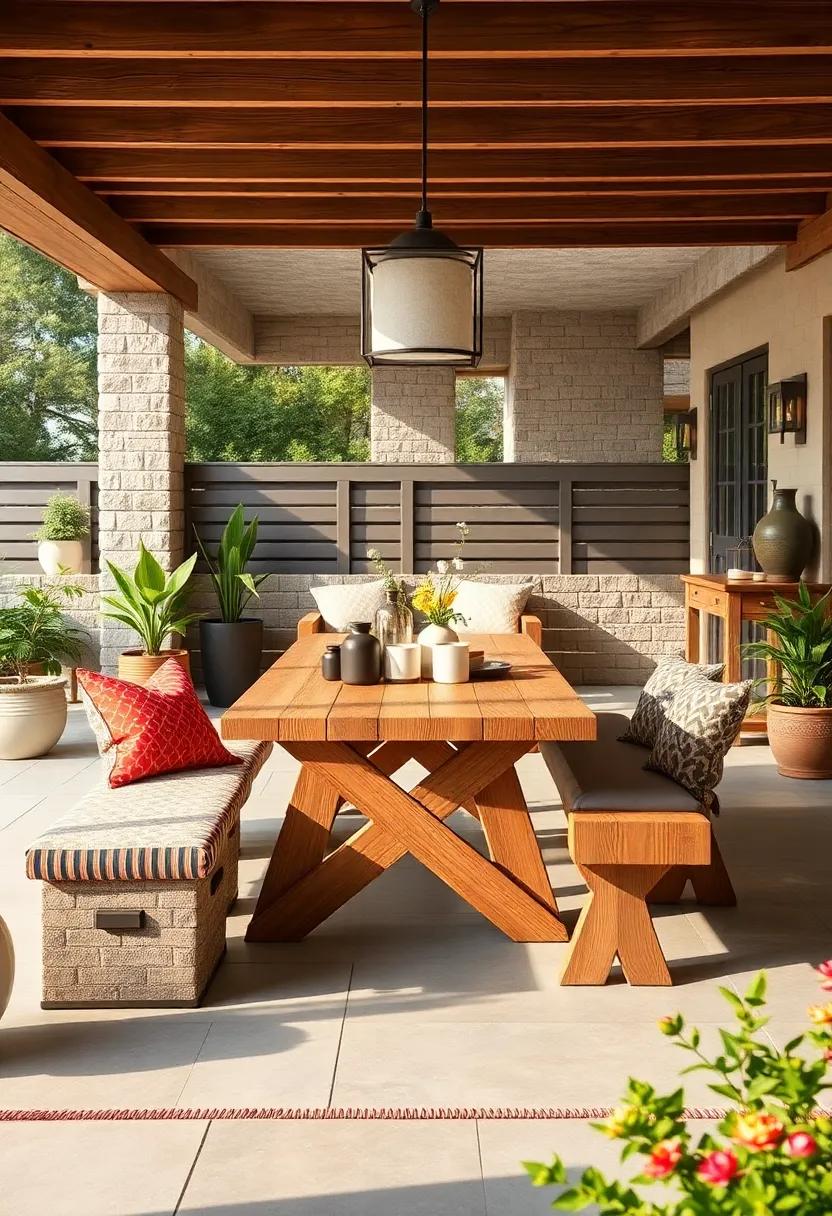 Imagine transforming your patio into a stylish yet functional oasis with a multi-functional dining bench that combines seating and storage seamlessly. This innovative piece not only provides ample space for guests but also features hidden compartments that can cleverly accommodate everything from table linens to grilling tools. With its sleek design, available in various materials such as weather-resistant wood and metal, the bench can enhance any outdoor aesthetic while ensuring that your patio remains organized and clutter-free.