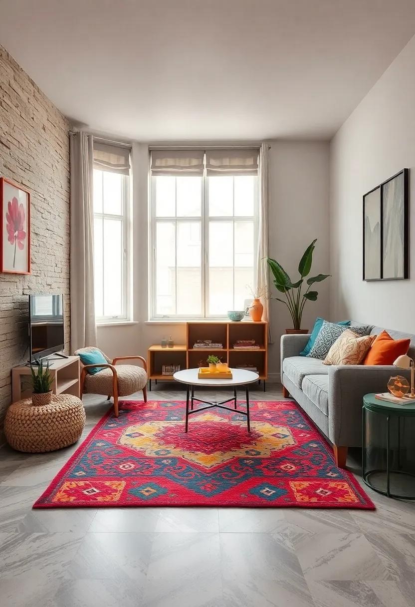 Explore Colorful Patterns: Choose a rug with vibrant patterns to infuse energy and personality into the small space
