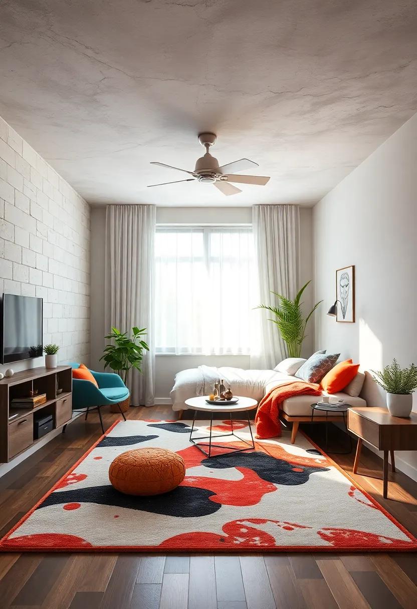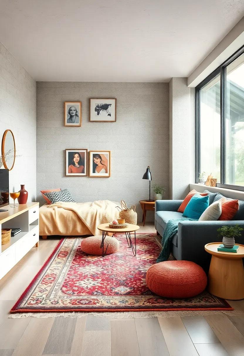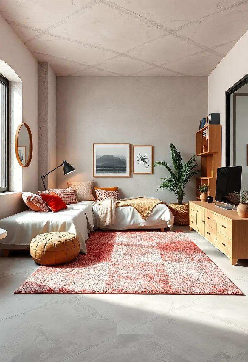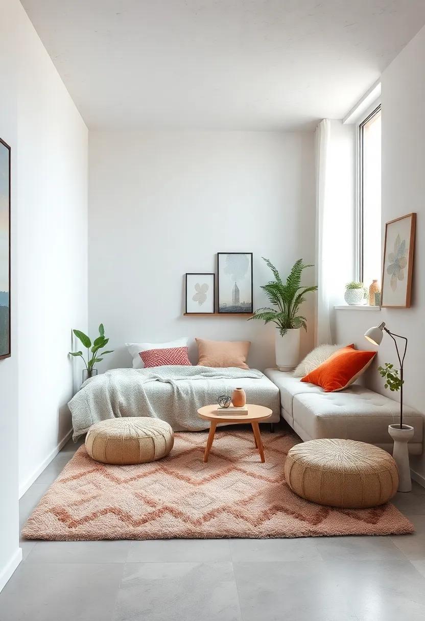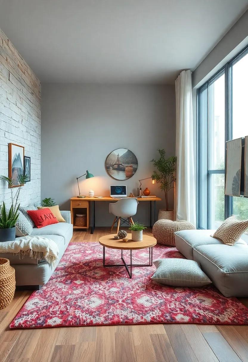Define Zones: Use rugs to create distinct functional areas, like a study zone and a chill-out zone, within a compact room