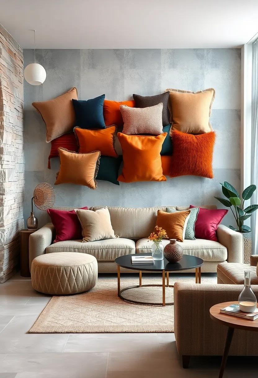 Transforming your walls into a canvas of comfort, oversized pillows can serve as unexpected yet striking art pieces. Instead of hiding them away on the couch, consider hanging these plush beauties in an artistic arrangement to enhance your small living room’s aesthetic. When selecting pillows for this purpose, choose those with vibrant colors, bold patterns, or textured fabrics that can serve as conversation starters. To create an engaging display, arrange them in a way that draws the eye—think staggered heights or a themed color palette.The juxtaposition of soft textiles against hard walls adds depth and warmth to your space, inviting a cozy atmosphere without sacrificing style.