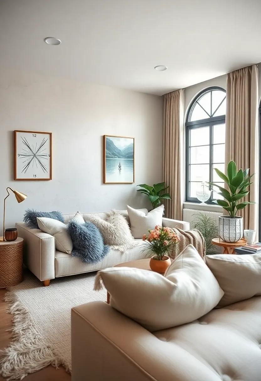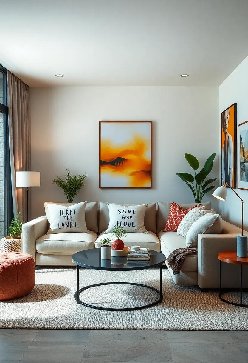 Add a sprinkle of personality to your small living room by integrating oversized pillows adorned with your favorite quotes or images. Imagine cozying up on your couch, surrounded by whimsical designs that resonate with your style and values. These plush statements not only provide comfort but also serve as conversation starters, inviting guests to reflect on the unique aspects of your décor.