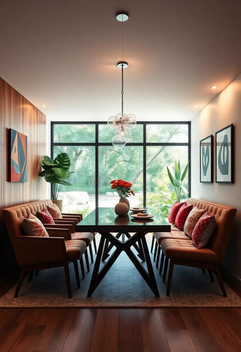 For seat cushions, opt for fabrics that incorporate eye-catching motifs in bright, contrasting colors. Think cushions with whimsical hexagons or playful polka dots, crafted from durable yet soft materials. Not only do these accents provide comfort, but they also spark conversation, inviting your guests to bask in the charm of your mid-century modern aesthetic with every meal. Whether layered with solid colors or mixed textures, these geometric elements will ensure your dining room remains a captivating blend of style and creativity.