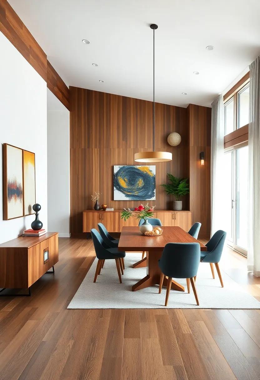 Transforming your dining room with accent walls is a surefire way to channel that signature mid-century vibe. Consider using wood paneling for a warm and inviting backdrop that seamlessly integrates natural elements into your space. Opt for rich woods like walnut or teak, which were hallmarks of the era, and let the grain’s beauty shine through. If you prefer a splash of color rather, painted wall treatments in hues inspired by mid-century palettes—think muted greens, oranges, or yellows—can provide a playful yet sophisticated contrast against your furniture.Not only do these elements create a visually striking focal point, but they also enhance the overall ambiance of your dining area.