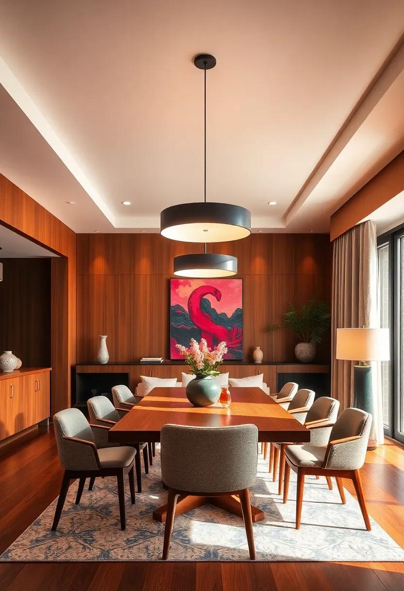 Incorporating bold pendant lights or visually striking table lamps into your dining room design can dramatically transform the space. These statement pieces are not just about illumination; they serve as focal points that draw the eye and instill a sense of personality into your room. Look for designs that boast clean lines or geometric shapes, quintessential traits of mid-century modern aesthetics. Consider options like: