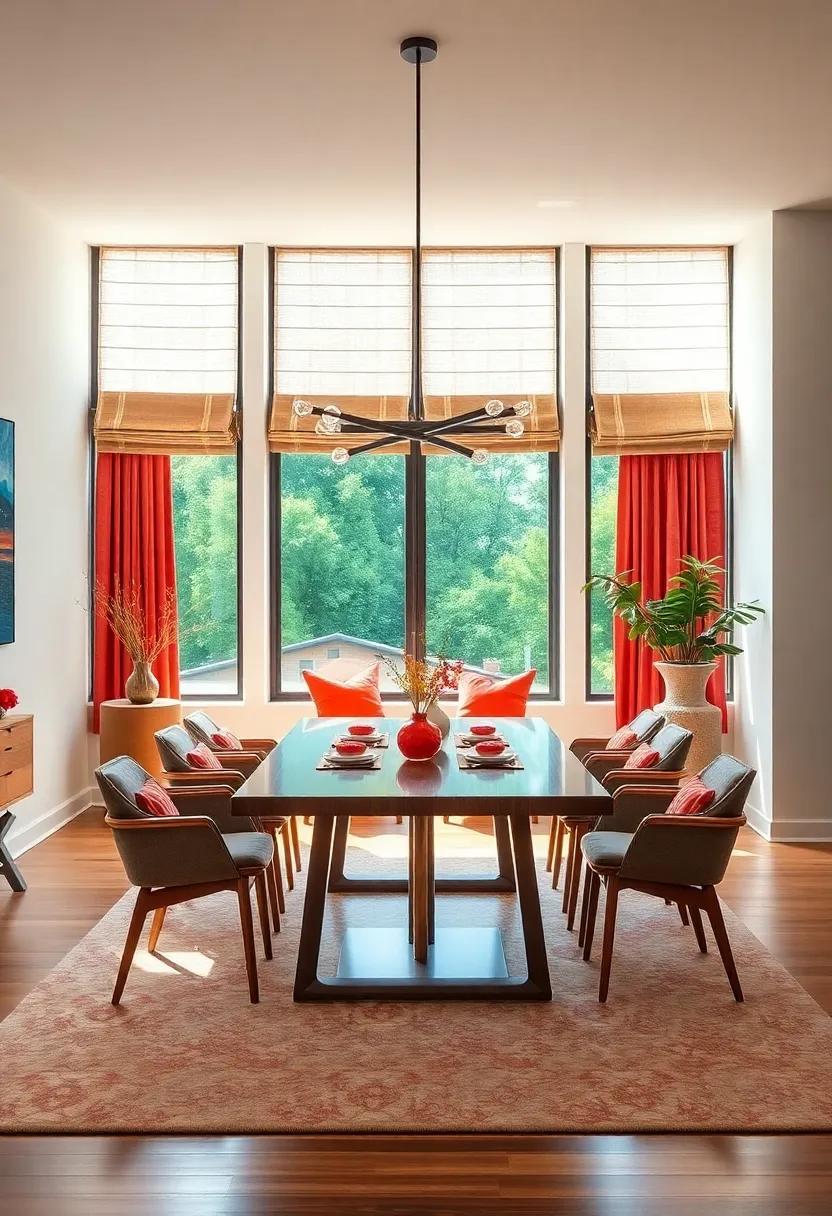 Transform your dining room into a vibrant homage to mid-century modern design with playful geometric fabrics that breathe life into the space. Consider curtains that sway gracefully in the breeze, adorned with bold patterns featuring interlocking triangles, chevrons, or concentric circles. This energetic flair not only complements the clean lines of your furniture but also serves as a nod to the era’s innovative spirit, turning an ordinary window into a panoramic view of artistic flair.