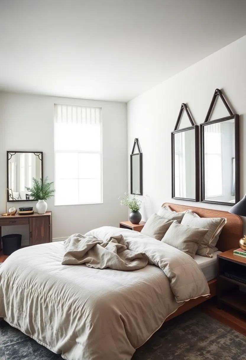 To maximize the impact of your mirrors, position them opposite windows or light sources to amplify natural light and create captivating reflections. Try layering different mirror styles and sizes to foster an eclectic yet cohesive look that draws the eye. Enhance the ambiance further by incorporating framed mirrors above nightstands, or as a statement piece over a dresser. this stylistic choice not only serves a practical purpose but also elevates the design, creating a focal point that captivates and inspires.