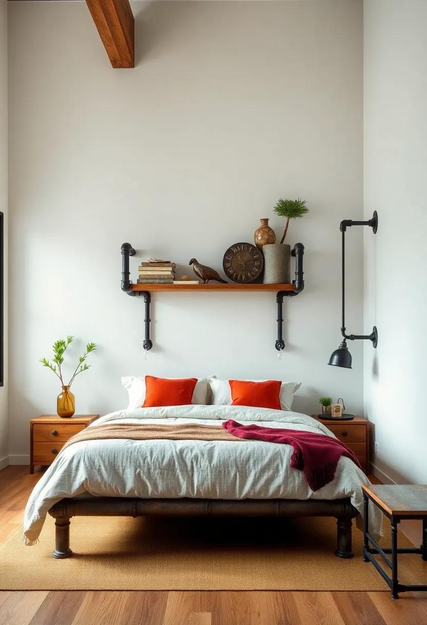 Embracing an industrial theme in your bedroom can be both stylish and functional, especially when you incorporate repurposed pipes into your décor. Use them as unique shelf brackets for your floating shelves, providing a sturdy and eye-catching solution that seamlessly melds form with function. Select pipes with a weathered finish for an authentic vibe, and pair them with reclaimed wood shelves to amplify that rugged aesthetic. This allows you to display books, plants, or decorative items while keeping the industrial motif consistent throughout the space.