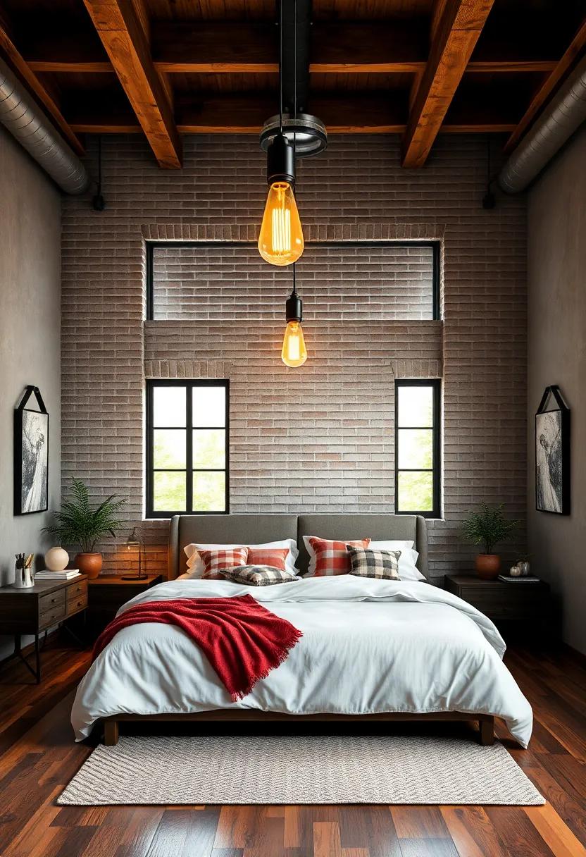 By layering these three types of lighting, you can create a versatile space that shifts from a tranquil retreat to an energetic area perfect for entertaining, all while accentuating the rugged elegance of the industrial aesthetic. Remember to play with dimmers to adjust the intensity and mood, ensuring your bedroom remains a cozy haven all year round.