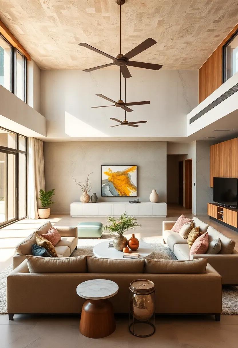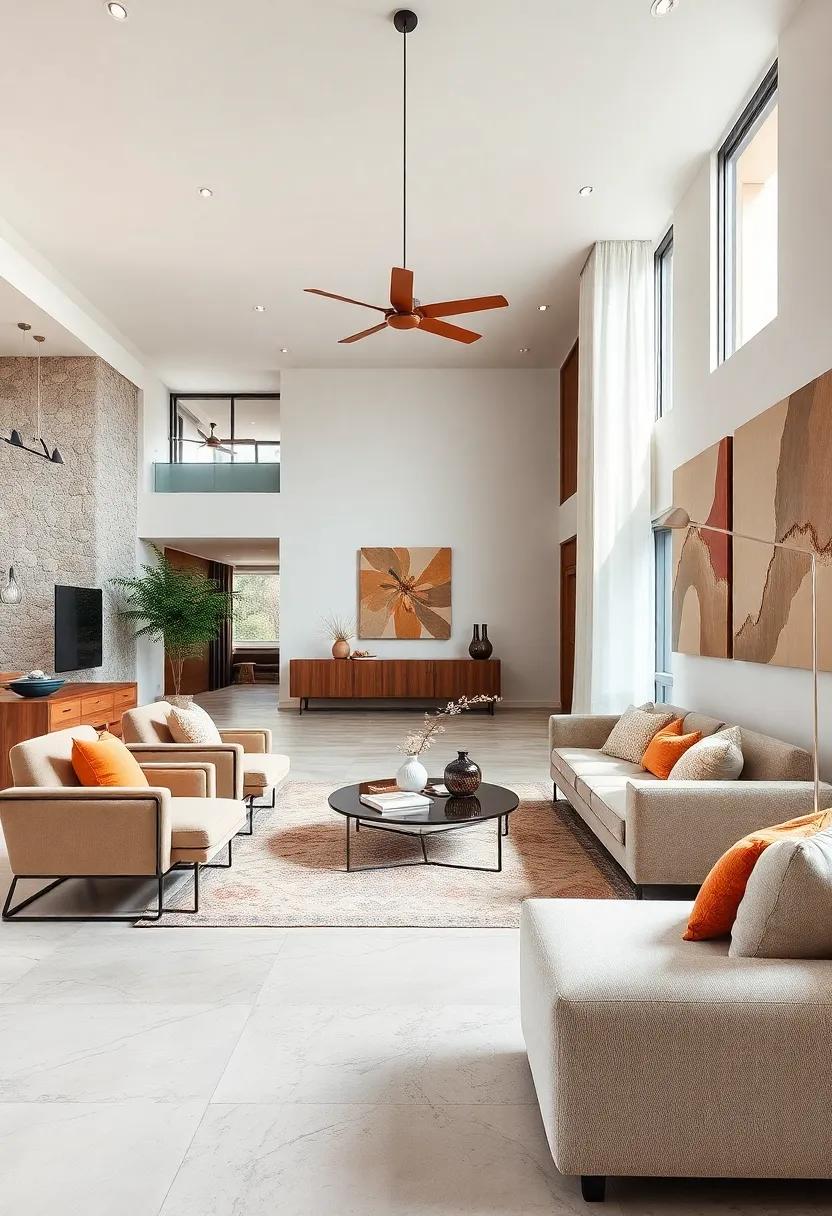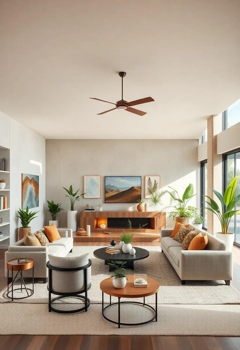 Incorporating a variety of plants not only brings life to your living space but also contributes to your overall well-being. Select pots that match your earthy theme—think terracotta, woven baskets, or minimalist ceramics—to enhance the organic feel. This subtle integration of nature will promote relaxation and a connection to the outdoors, making your open concept living room a true haven.
