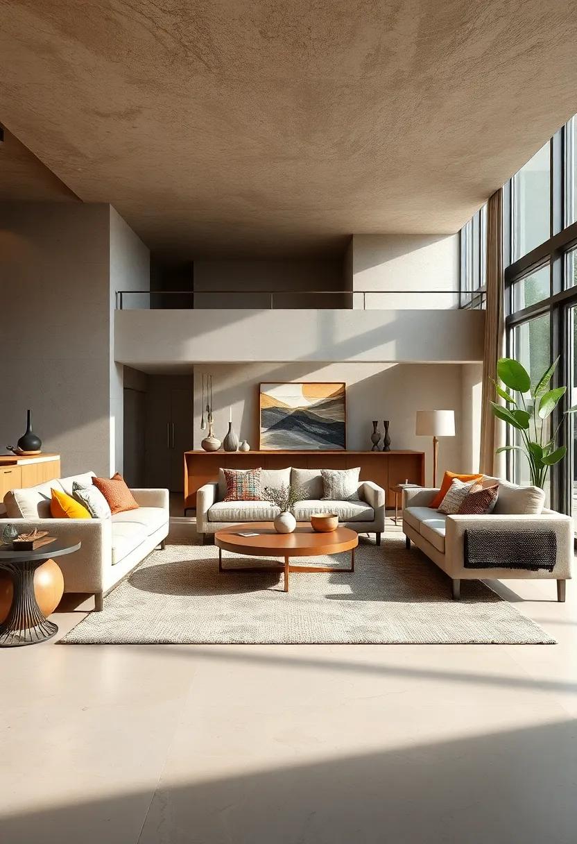 In addition to positioning, think about the height and placement of your mirrors. Hanging them at eye level invites interaction and reflection, making them focal points that encourage conversations. Incorporate smaller mirrors within gallery walls or above side tables to create captivating clusters that pull the eye across the room, adding depth without overcrowding the design. You might even consider a mirror wall with a frame that matches the warm woods or textiles in your decor. Whether you opt for simplicity or a creative collage, strategically utilizing mirrors can transform your living area, expanding its feel while exuding a welcoming ambiance that perfectly embodies the beauty of warm, earthy tones.