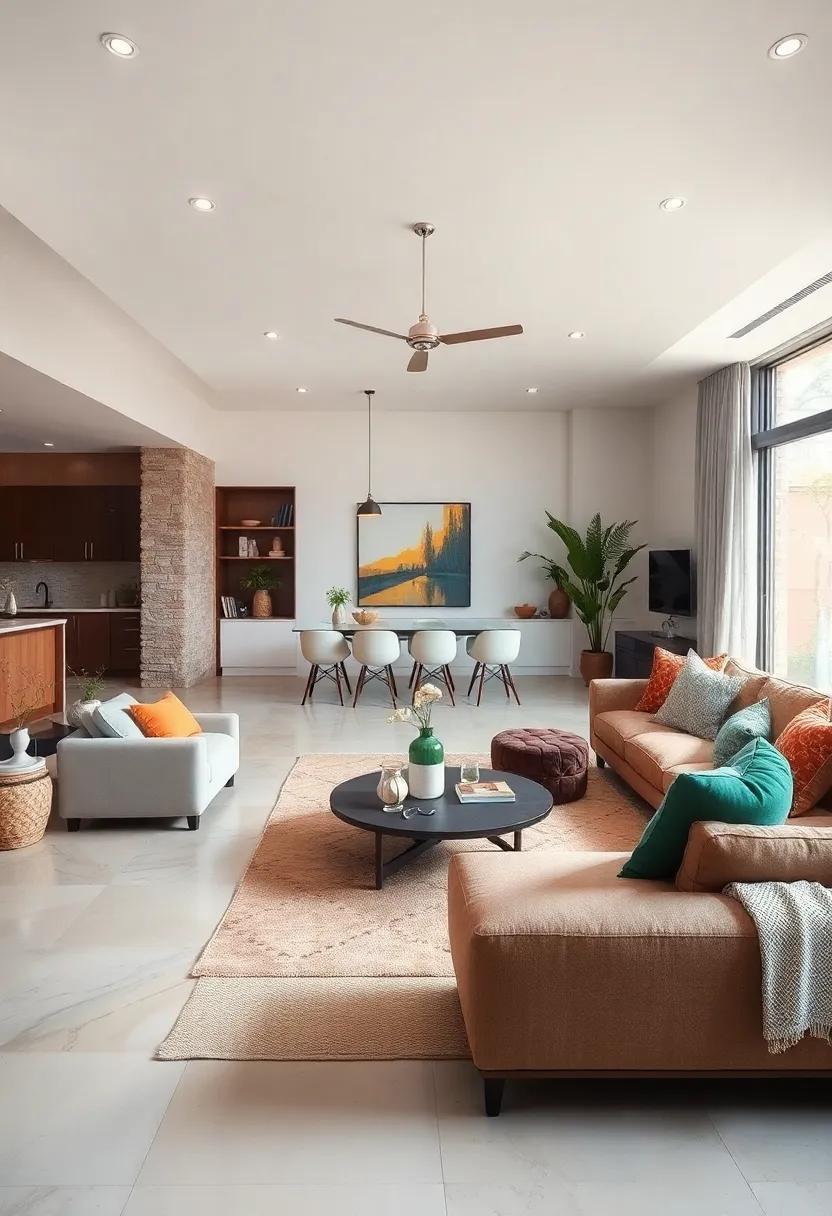 Remember, the beauty of open concept living is its potential for seamless flow and connection, both in your decor and your daily life. Whether you opt for rich terracotta accents, soft beige textiles, or natural wood finishes, each choice can foster warmth and harmony in your home.