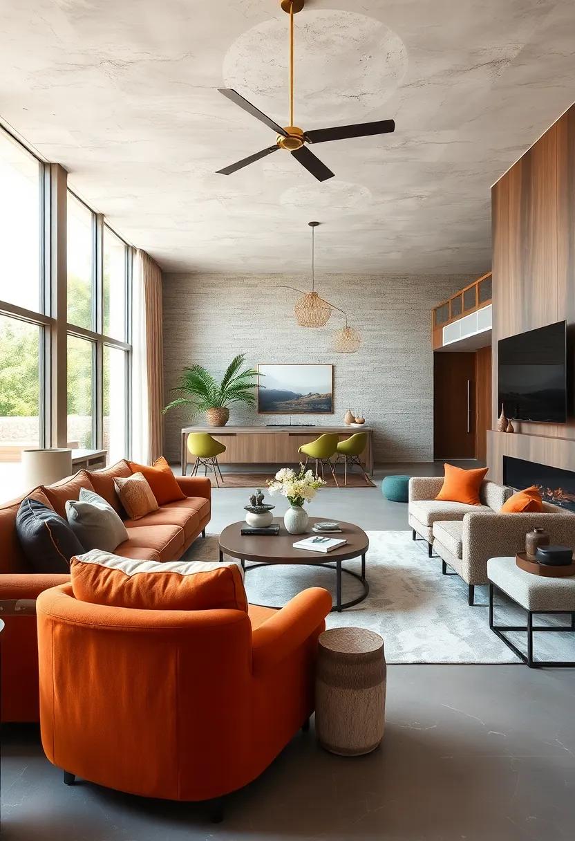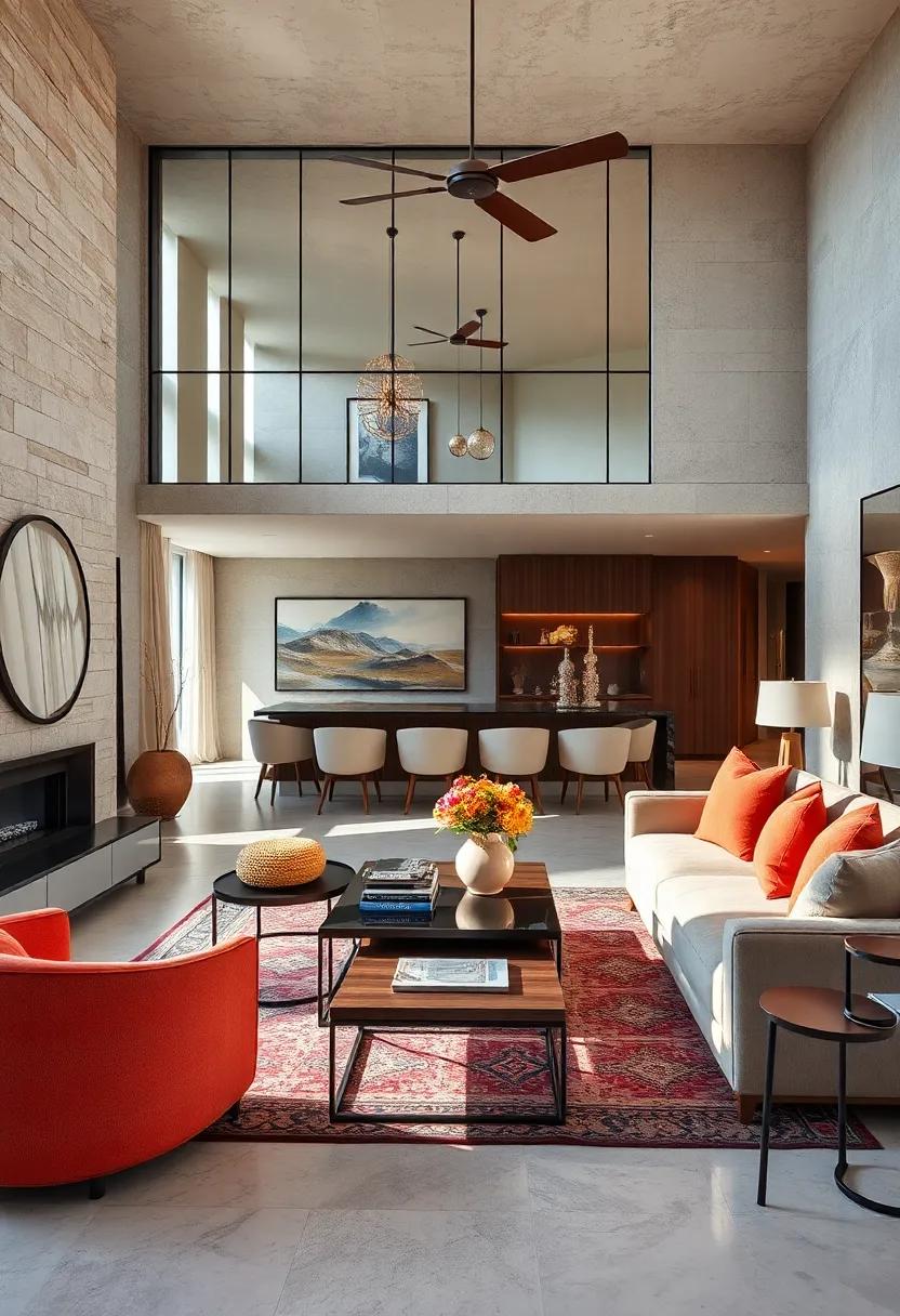 One of the most effective ways to enhance the warmth of an open concept living room is by thoughtfully integrating mirrors into your design. Mirrors not only serve as striking decor elements but also work to reflect natural light and create the illusion of a more spacious environment. Position large,framed mirrors opposite windows to bounce sunlight around the room and illuminate those earthy tones. Experiment with various shapes and sizes, such as round or geometric models, to add a dynamic element to the space while maintaining a cohesive, warm aesthetic. Consider backing the mirrors with soft gold or bronze finishes to complement the earthy hues, reinforcing the warmth and richness of your color palette.