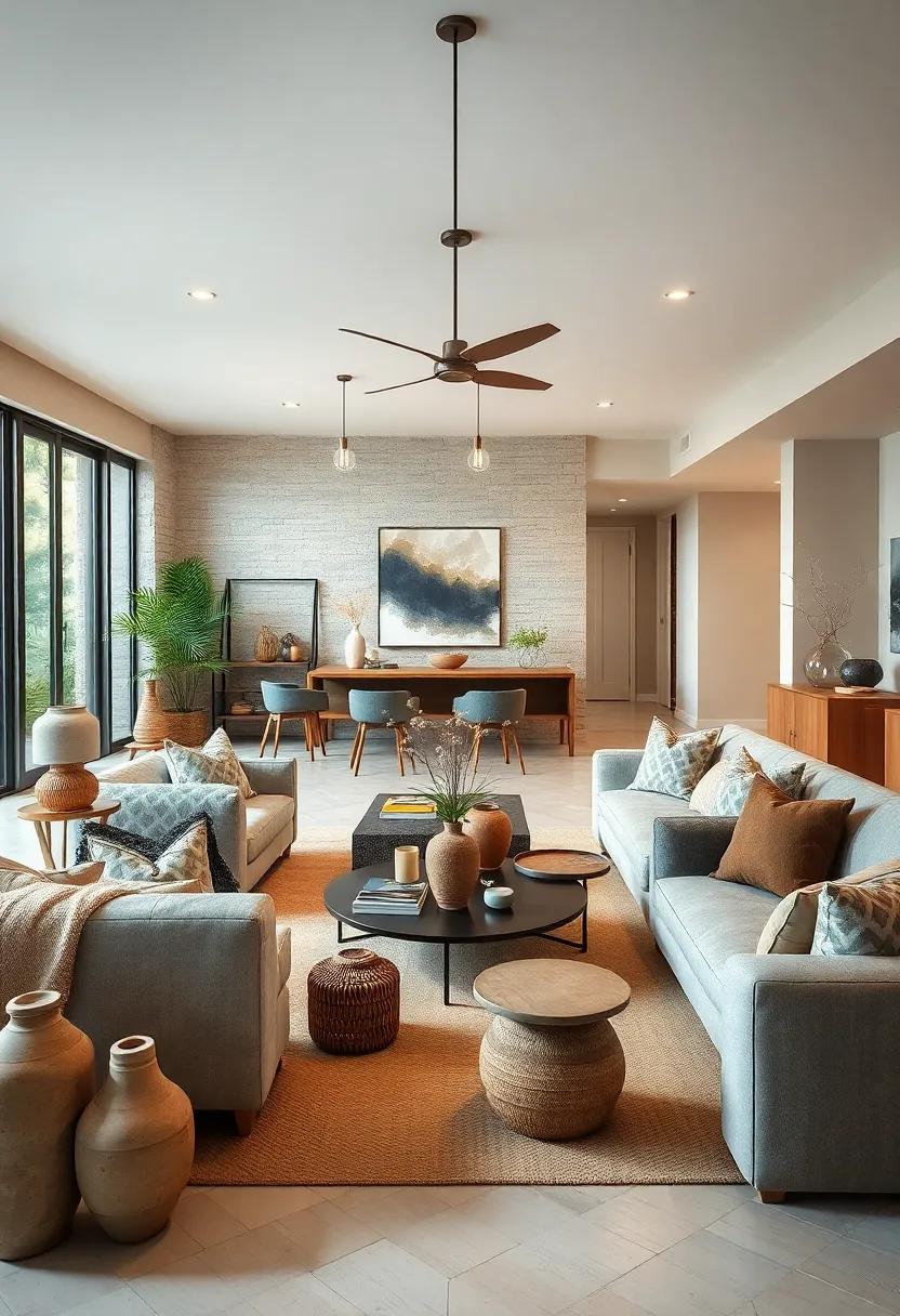 Incorporating thoughtful accessories can transform the atmosphere of your open concept living room, infusing it with a sense of warmth and organic charm. Consider selecting decorative items that blend seamlessly with your earthy palette, such as: