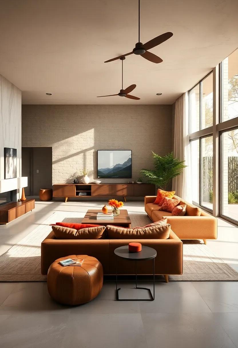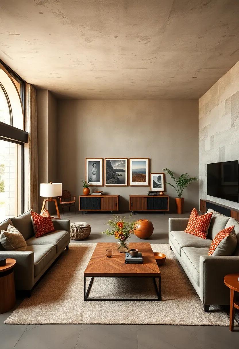 Statement Furniture: Opt for a bold, earthy-toned sofa or armchair that serves as a focal point while complementing the overall design