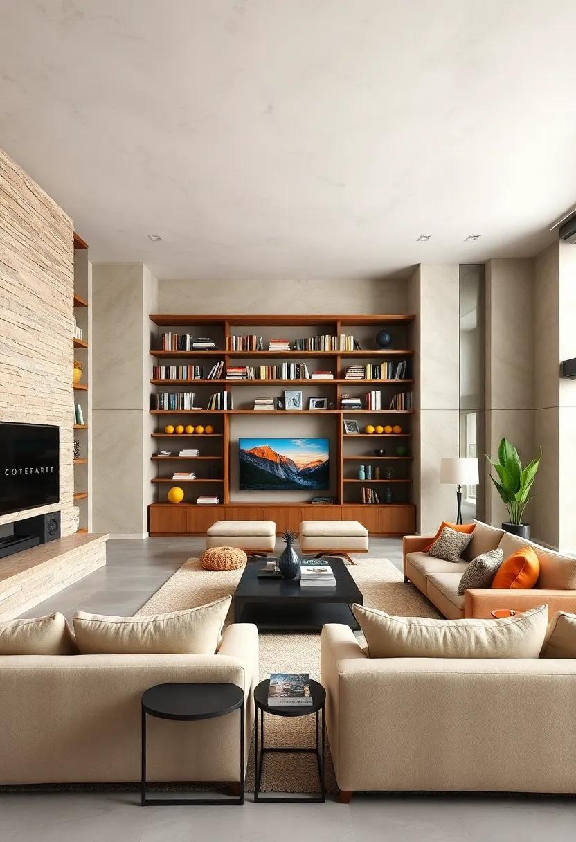 Transform your living space with floor-to-ceiling bookshelves that not only serve a practical purpose but also elevate your room’s design aesthetic. These built-in features create a seamless look while allowing you to display your treasured book collection, art pieces, and decorative items.By utilizing warm, earthy tones in the shelving materials—like rich oak or walnut—you can harmonize the shelves with the overall color palette of your home, creating an inviting and cohesive atmosphere. Pairing these shelves with the right lighting can also enhance their beauty, showcasing your books like gallery pieces and breathing life into an otherwise stark wall.