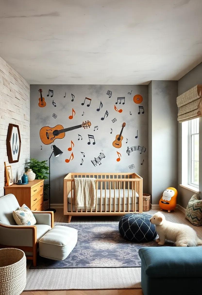 Dreamy Musical Murals: transform the nursery walls with hand-painted or decal murals of musical notes,instruments,or favorite songs