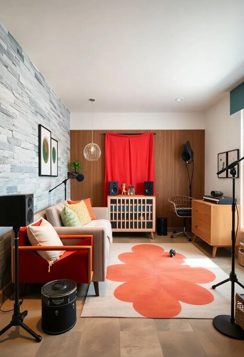 - Decor: Hang posters of famous artists or colorful notes and lyrics around the studio area to set an inspiring atmosphere.