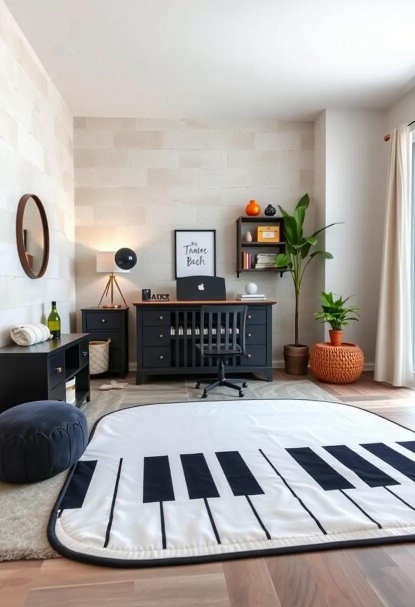 - Colorful upholstery: Fabric that features musical notes or instruments for a thematic touch.