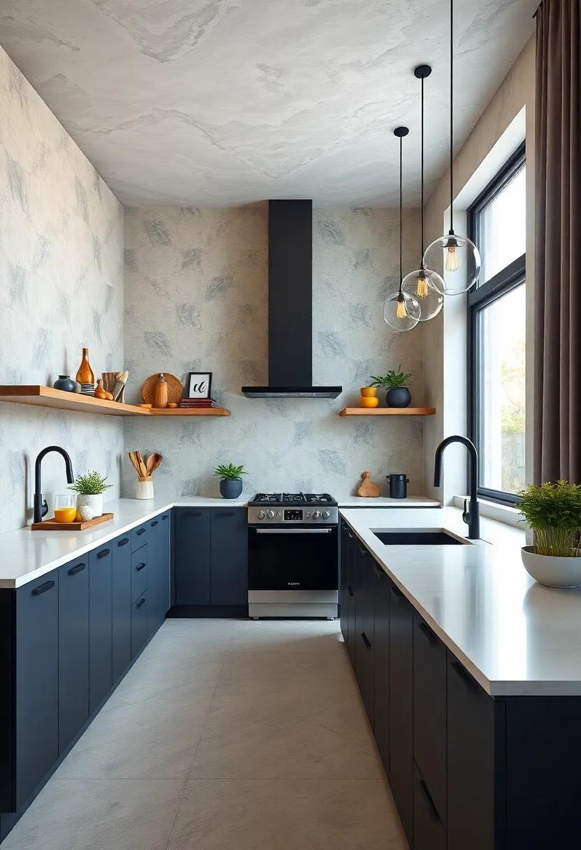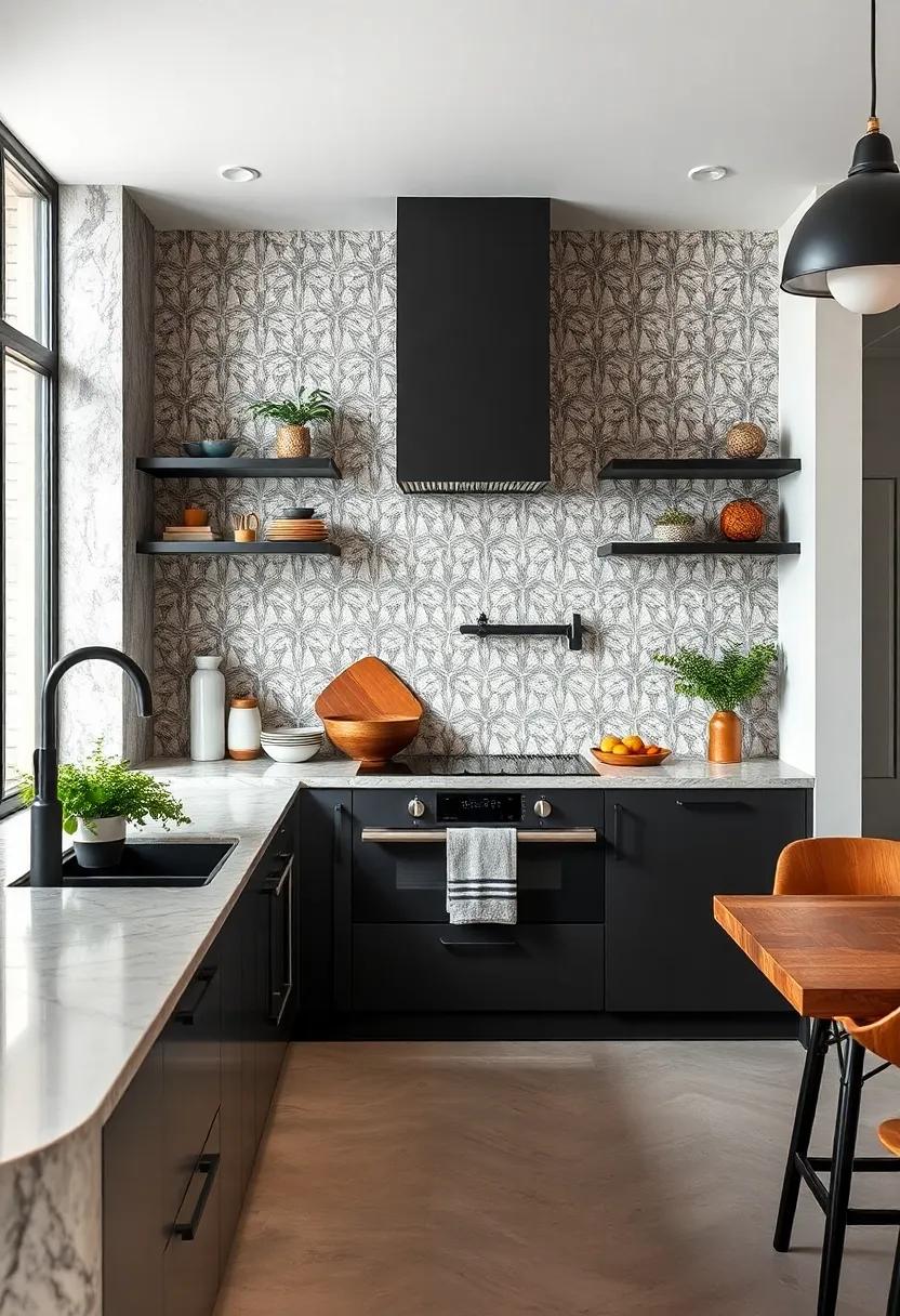 - Textured Wallpaper: For a unique twist, consider a wallpaper with an engaging pattern behind open shelving or a kitchen island.