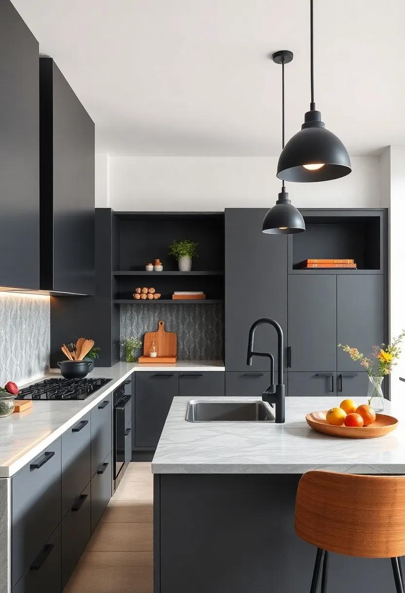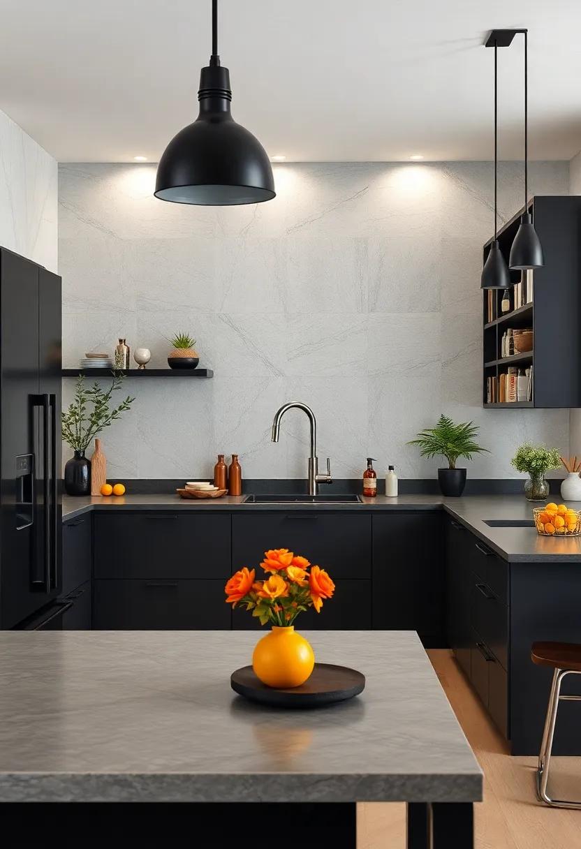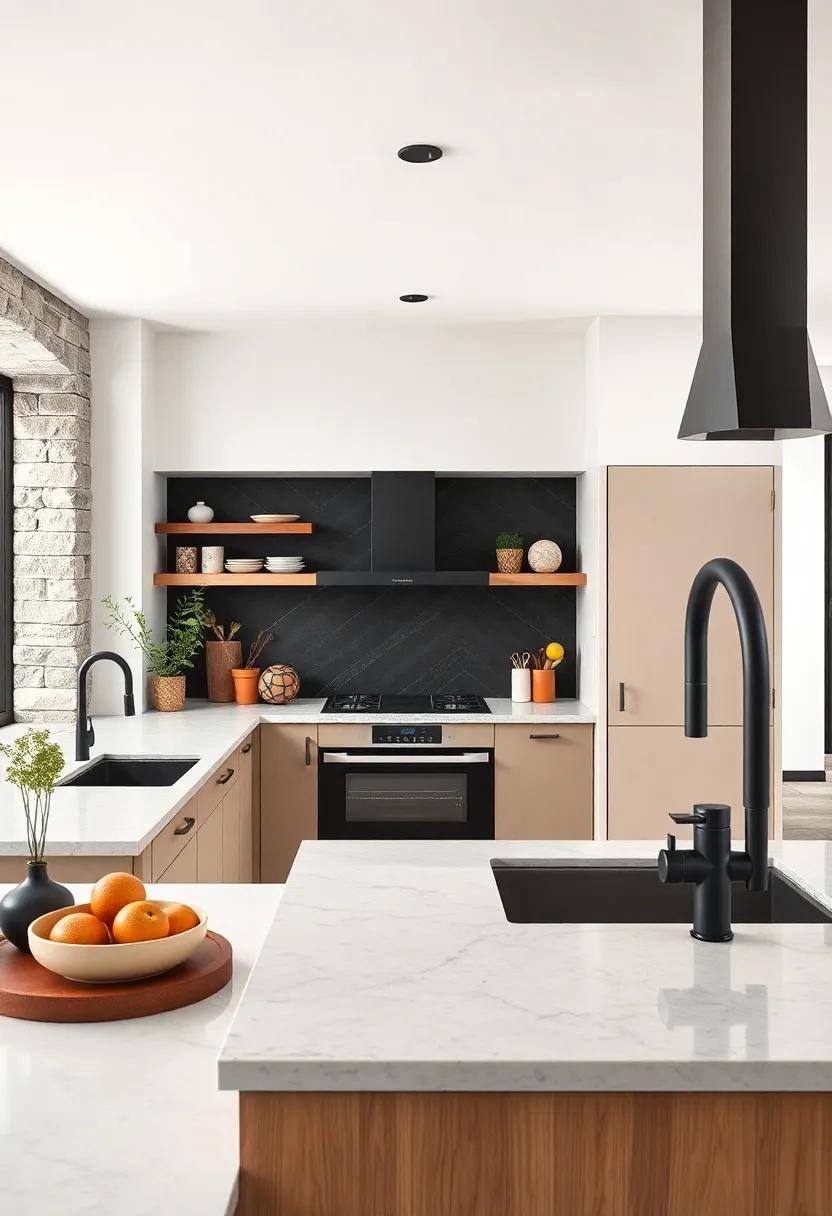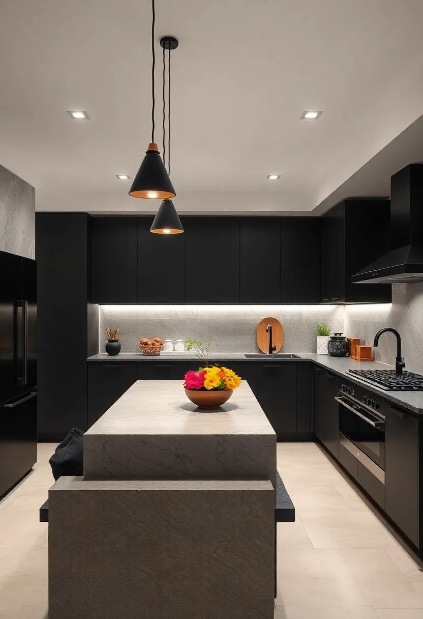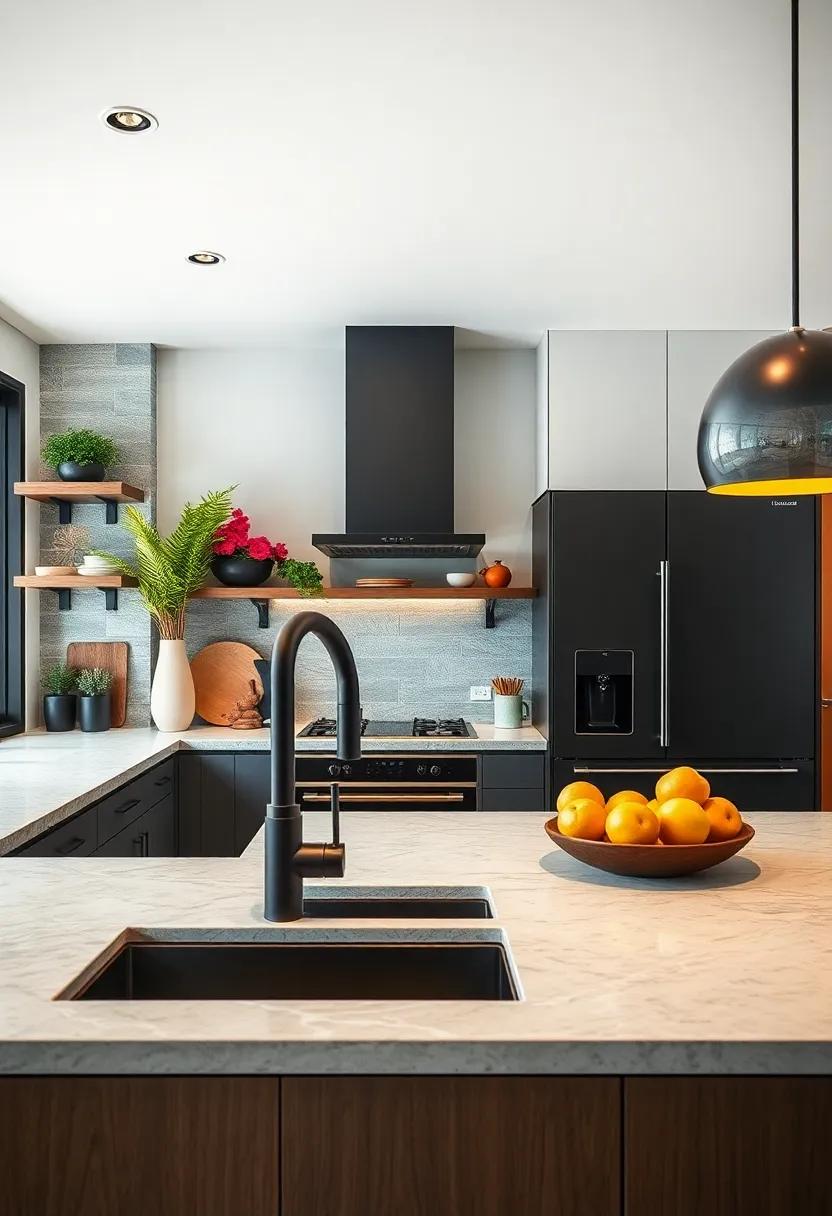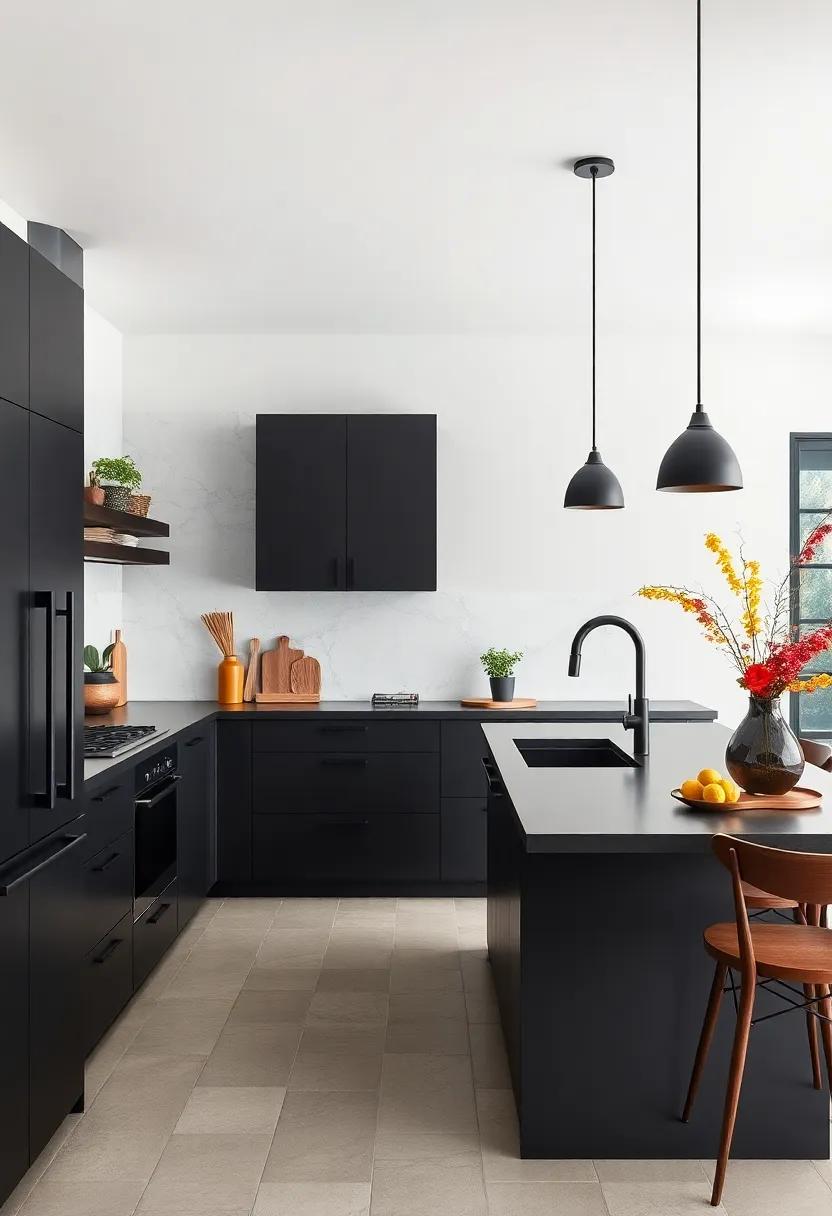 - Bright Colors: Vibrant cabinetry or backsplash tiles create a stunning pop against matte black, enhancing both elements.