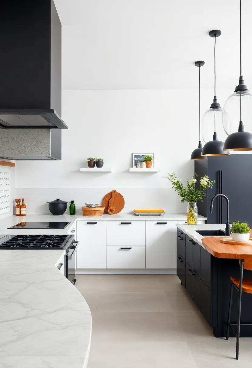 - Accent Features: Use black as an accent on bar stools, pendant lights, or shelving.