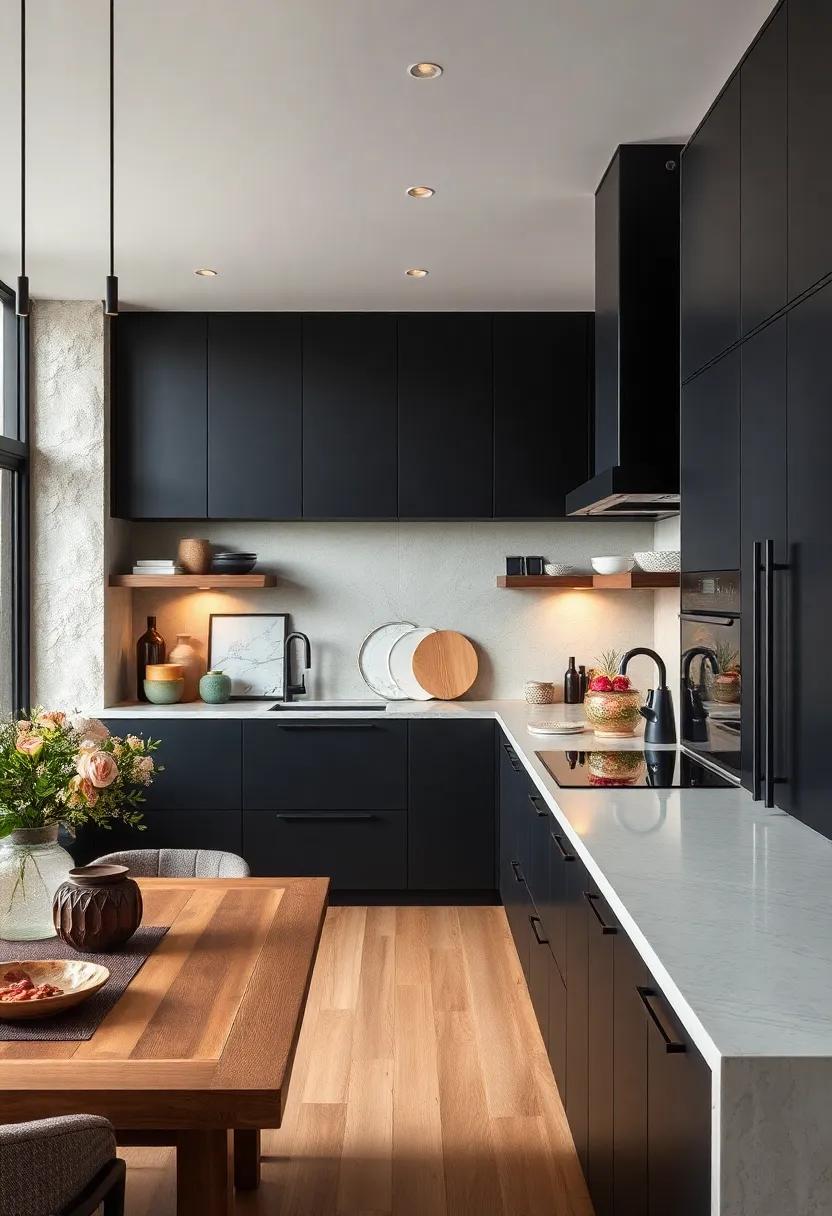 Contrast and Balance: Combining matte black with light-colored cabinetry provides a stunning visual contrast that enhances depth and dimension in the space