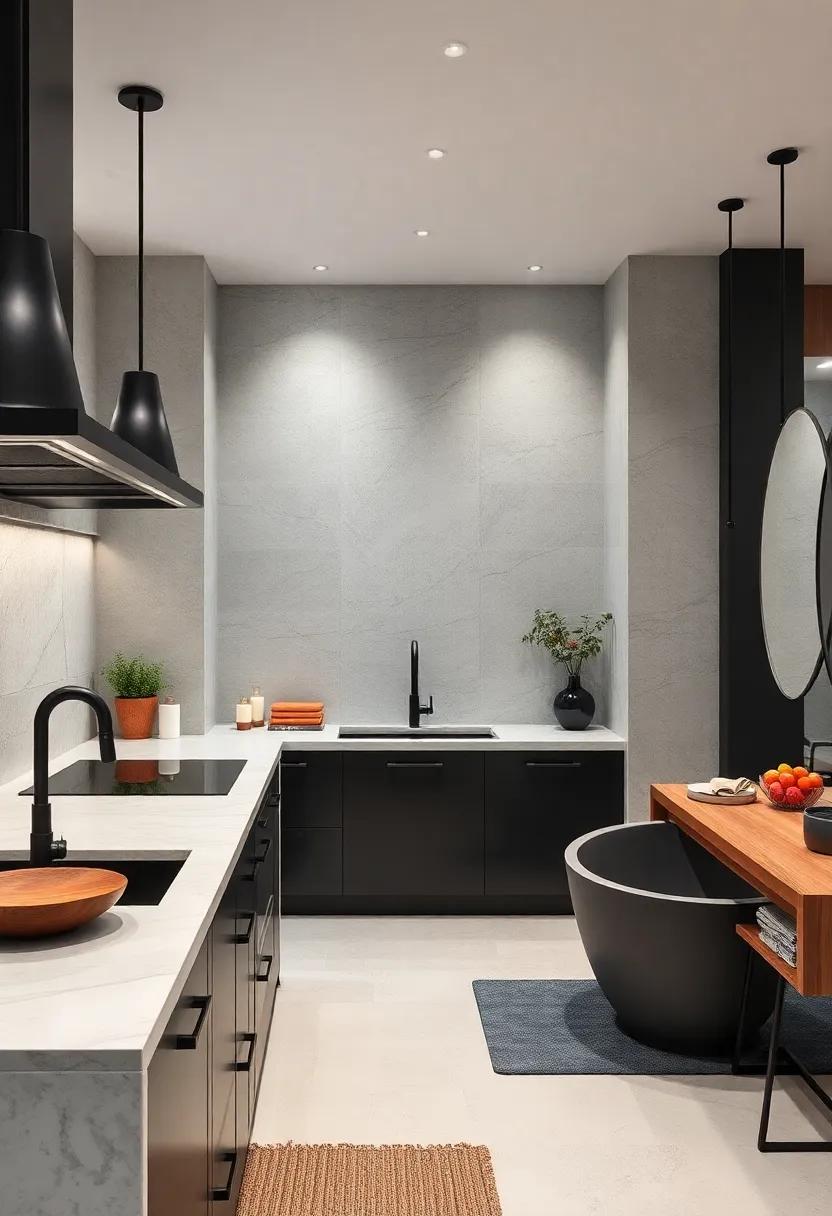 Statement Pieces: Use oversized matte black fixtures, like a bold faucet or light fixture, as a centerpiece to draw the eye and spark conversation