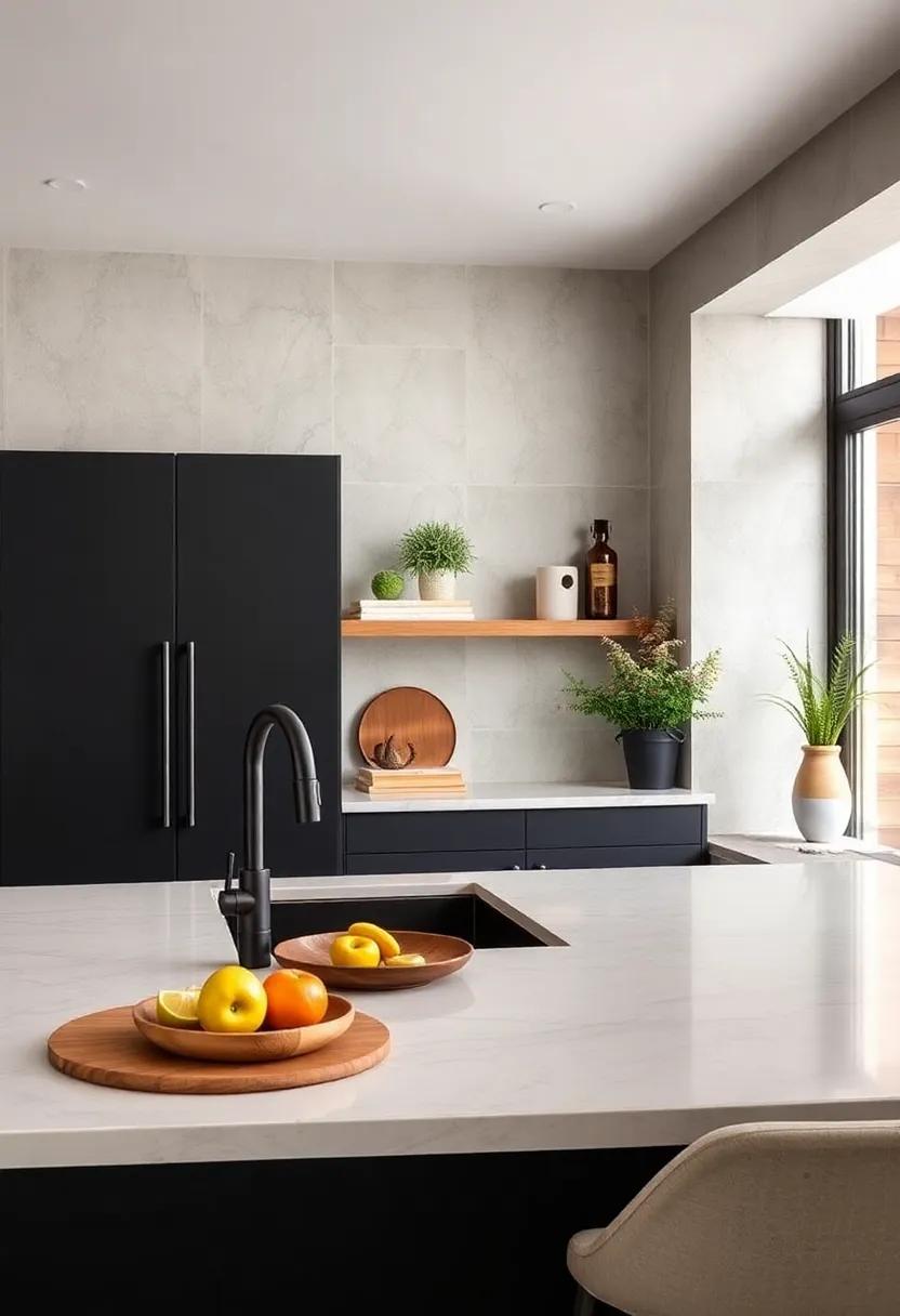 - Subway Tiles: Classic white subway tiles with a matte finish can add texture and keep the focus on the matte black elements.