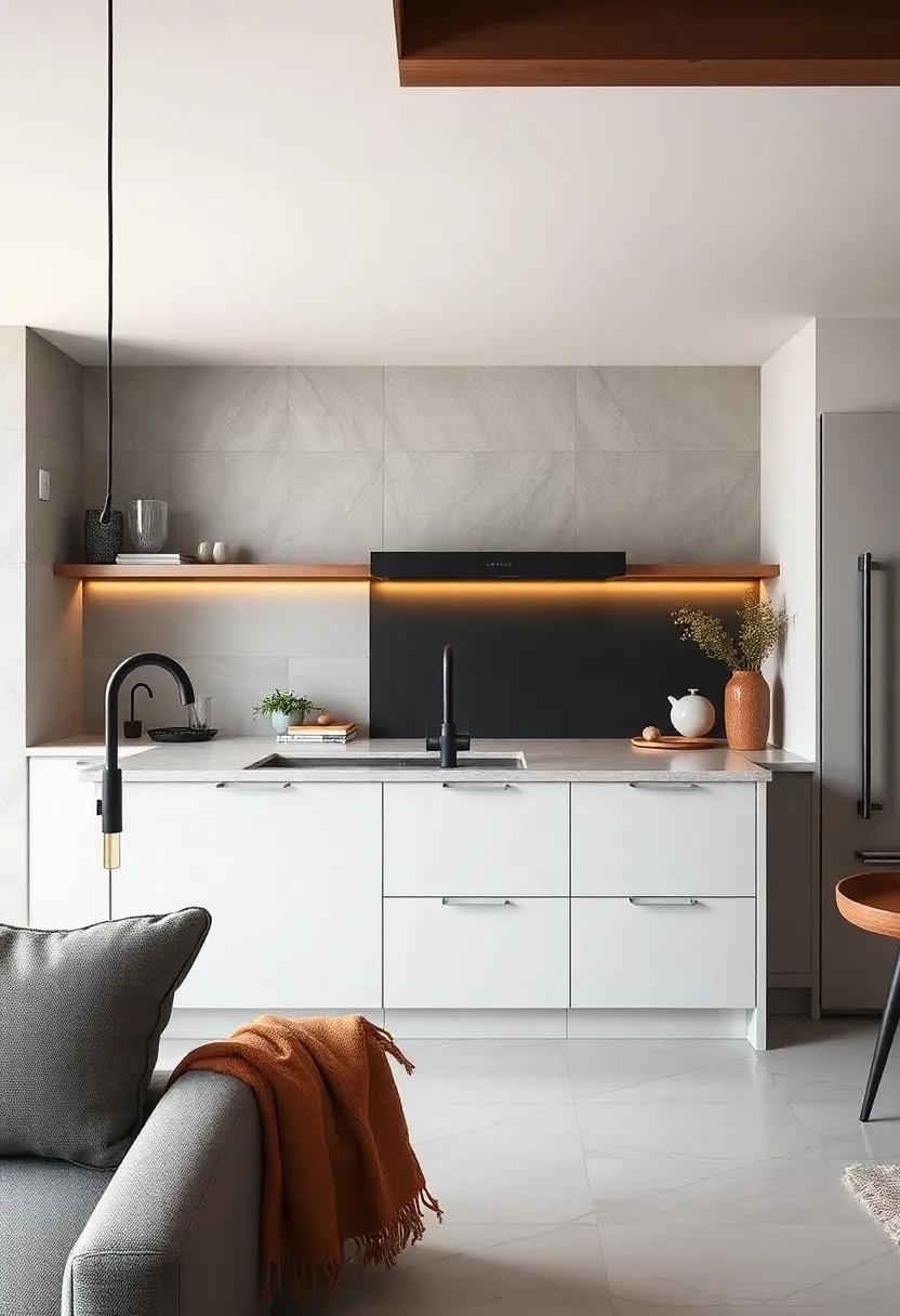 - Texture Play: Combine smooth matte surfaces with the warmth of natural woods or glossy finish cabinetry.