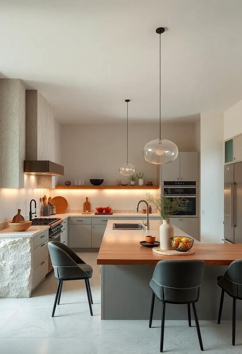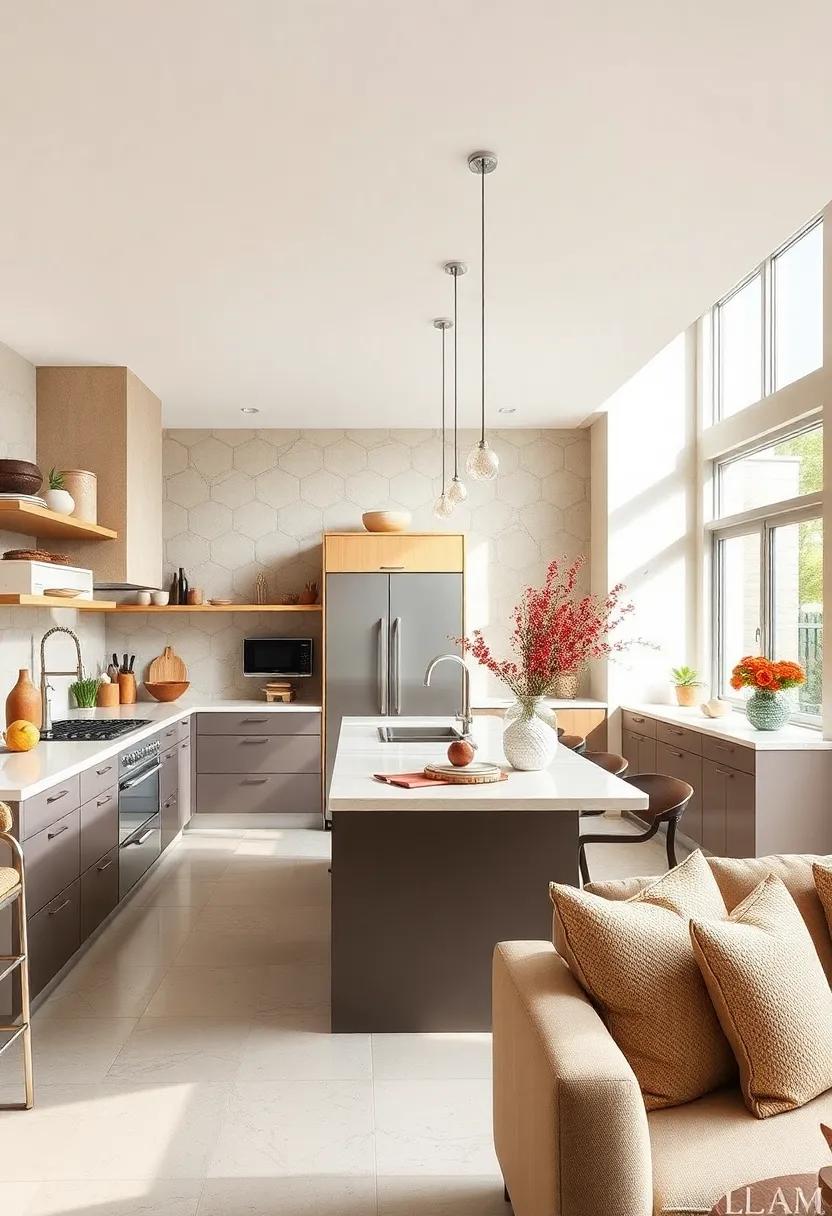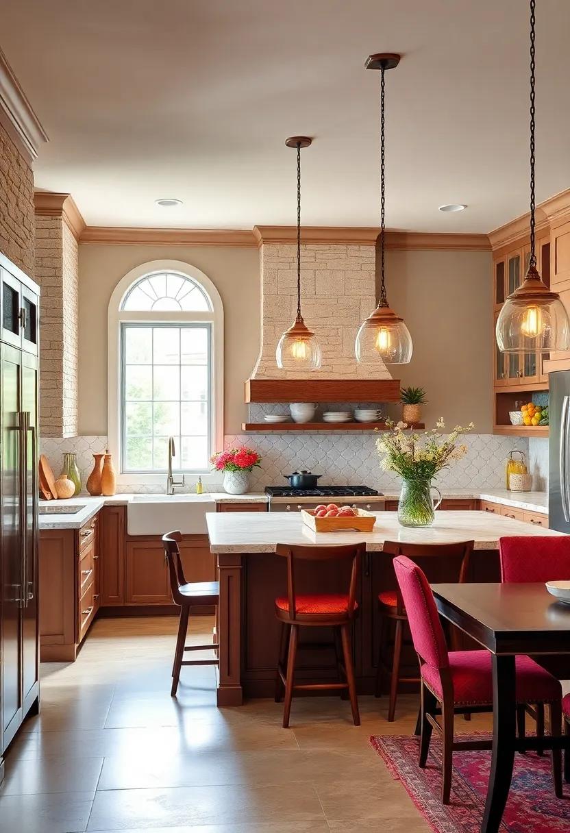 The heart of the kitchen features a large, island workspace that doubles as a gathering spot for family and friends, emphasizing the importance of togetherness in the cooking experience. Thoughtfully selected decor items,like vintage jars and artisanal pottery,add a touch of personality without overwhelming the space. Additionally, the natural light streaming in through oversized windows highlights the beauty of both the modern elements and rustic details, making this kitchen a place where culinary dreams can truly come to life.