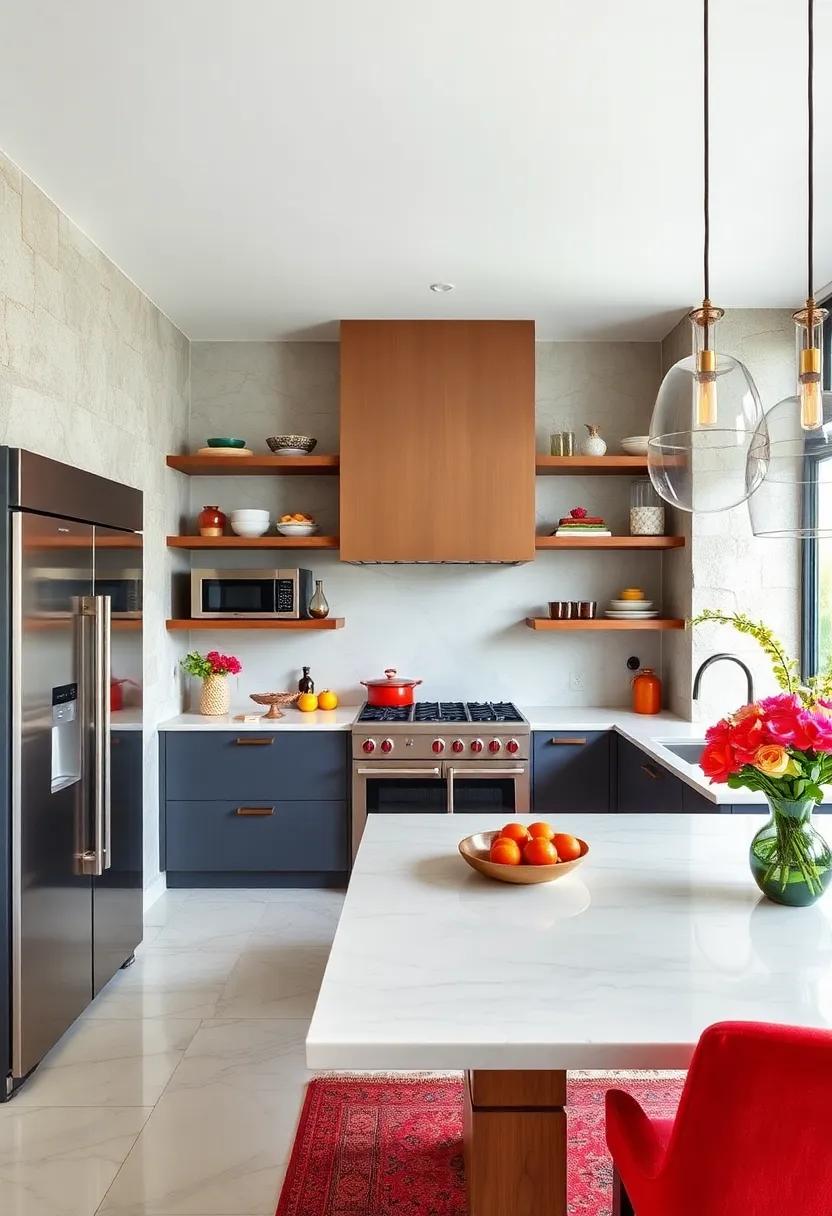 - Open shelving: A practical yet chic way to display beautiful dishware and fresh ingredients.