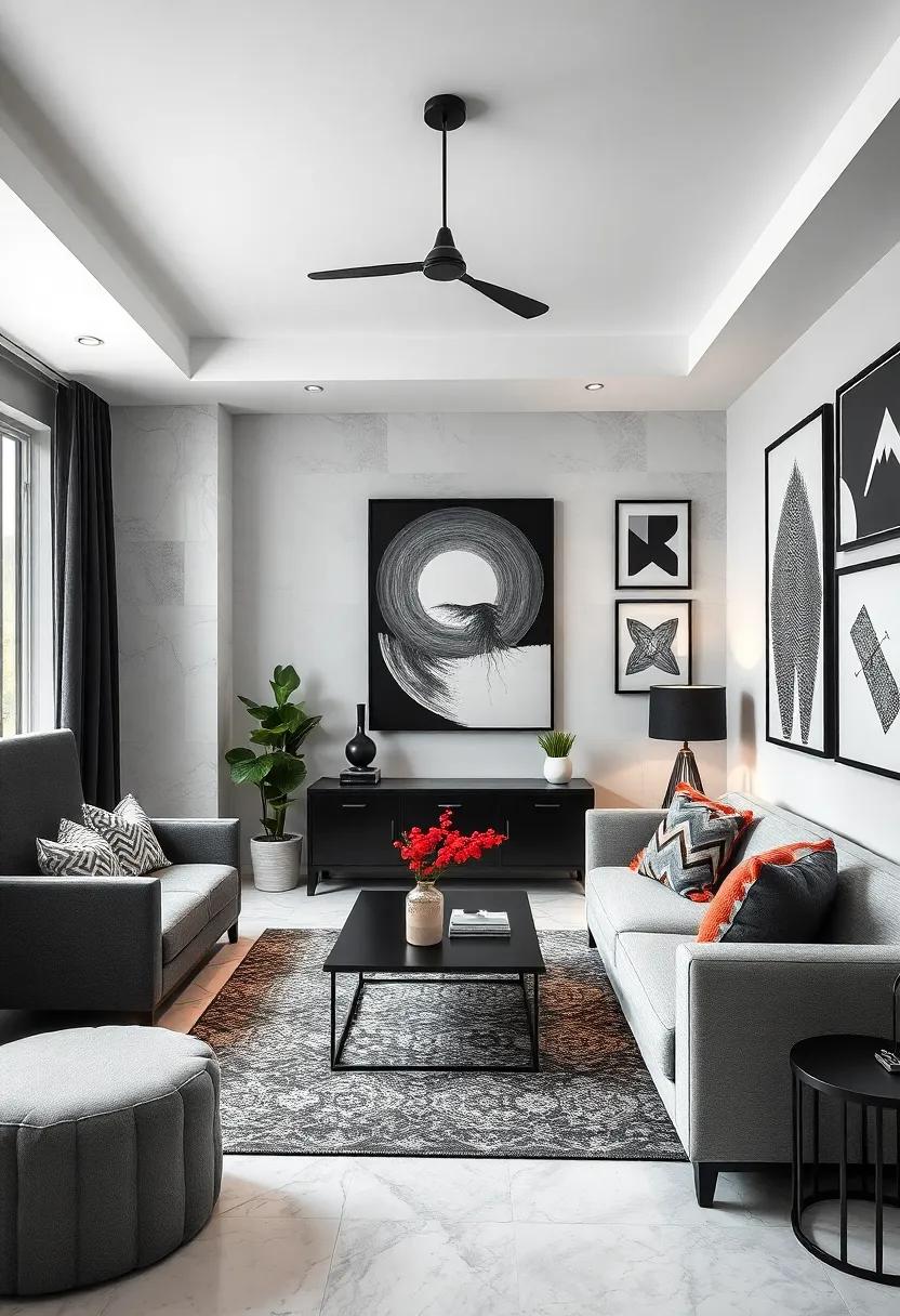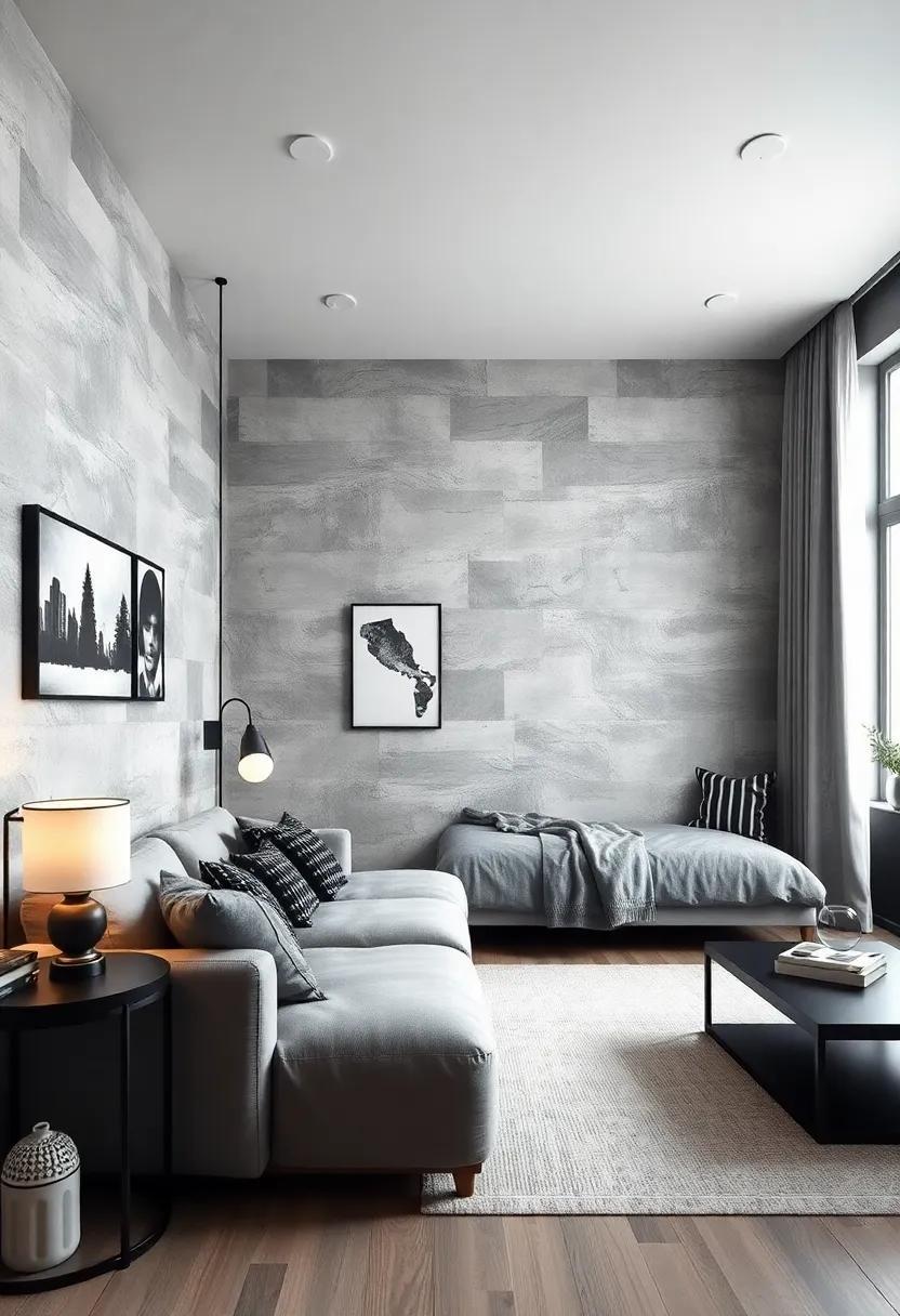 For those who love a little challenge, why not turn it into a fun project? Organize a mini art night with friends, complete with monochrome themes and snacks, and encourage them to create their own masterpieces. Think about layering textures by using different materials like charcoal, ink, or even paper cutouts, keeping everything in shades of black, white, and gray. This not only personalizes the space but also creates an engaging focal point on the walls. Each piece tells a story and serves as a conversation starter, making the room feel more alive and tailored to him.